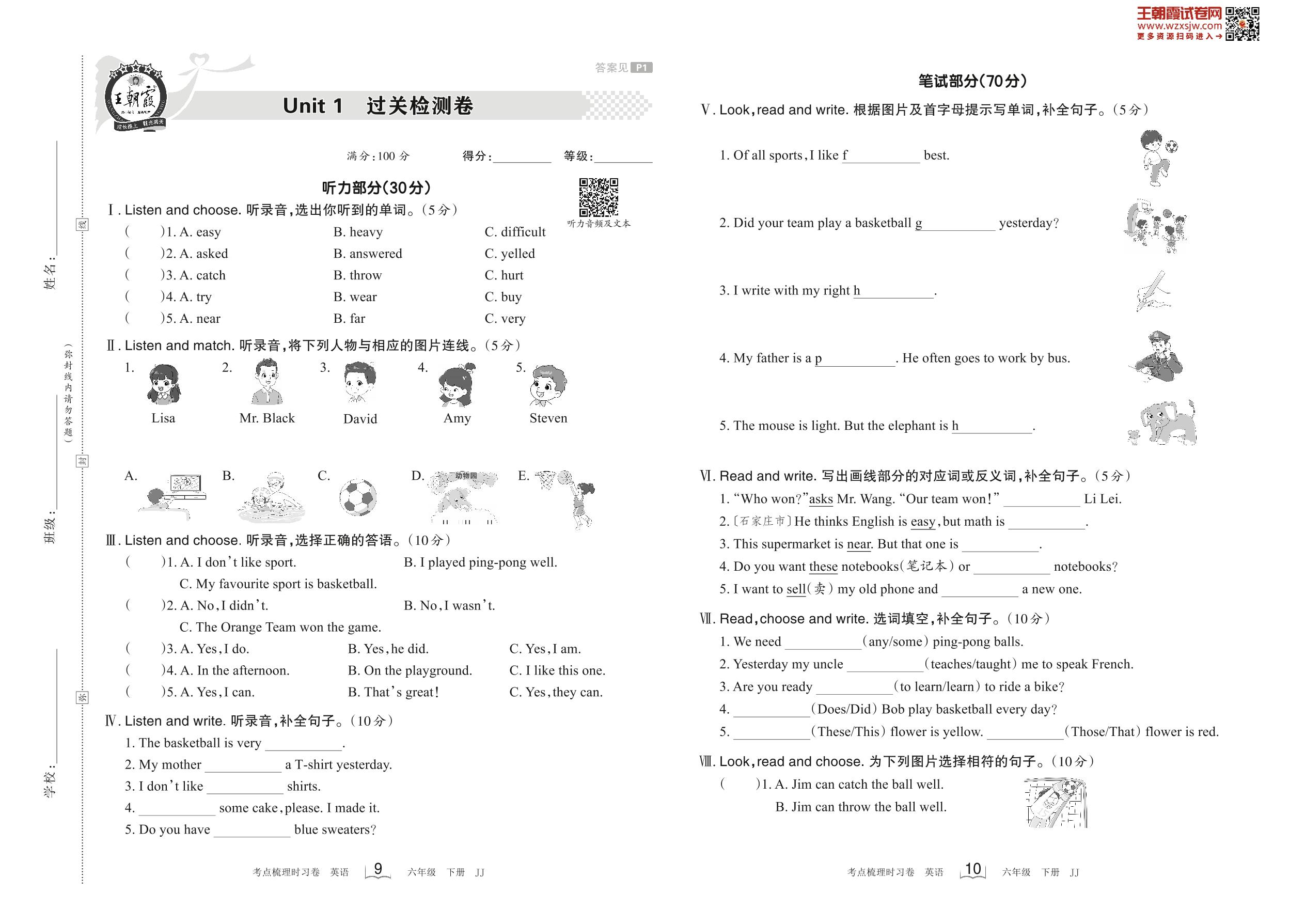 六年级英语冀教版下册单元卷
