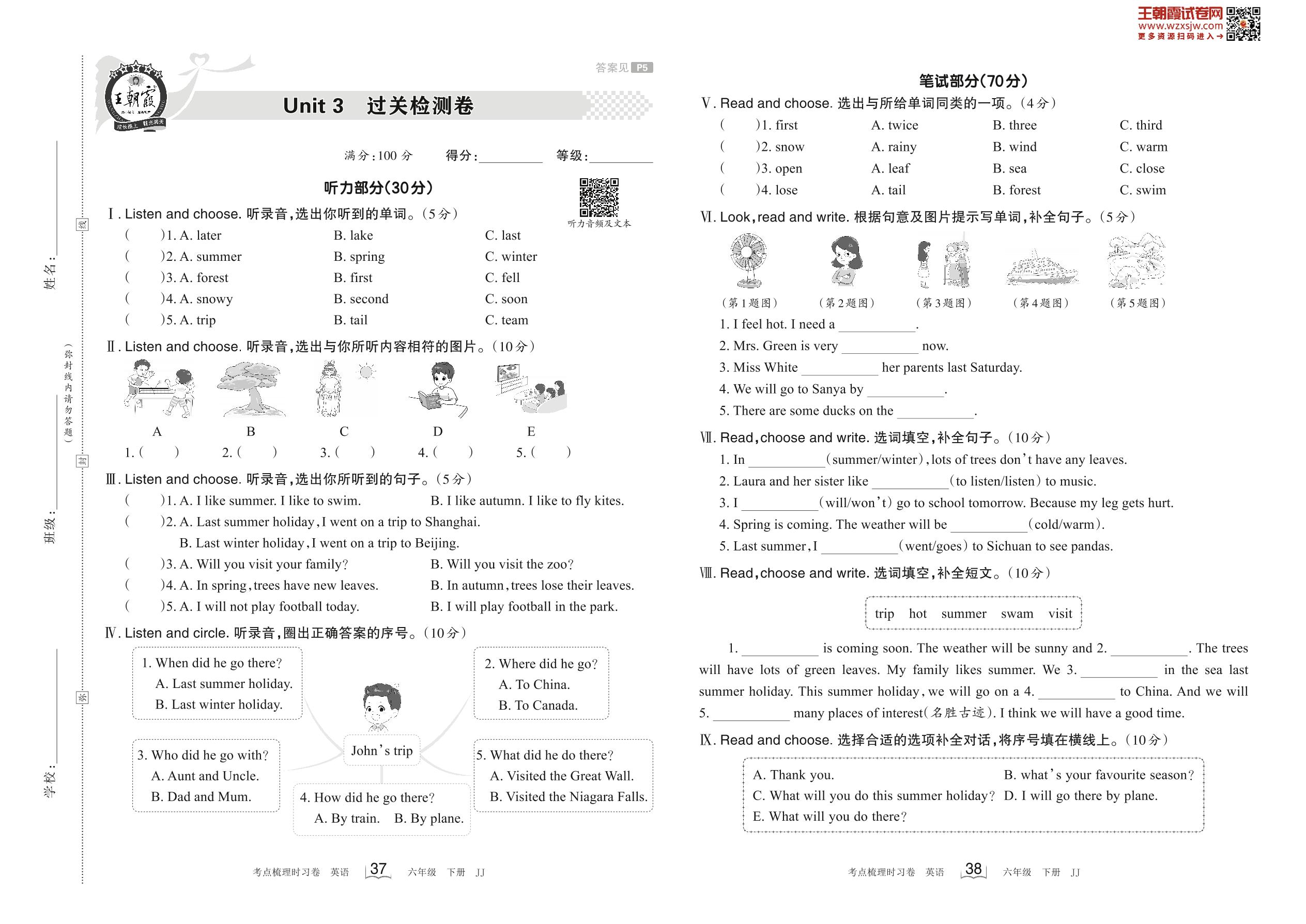 2023下册六年级英语冀教版 Unit 3 过关检测卷