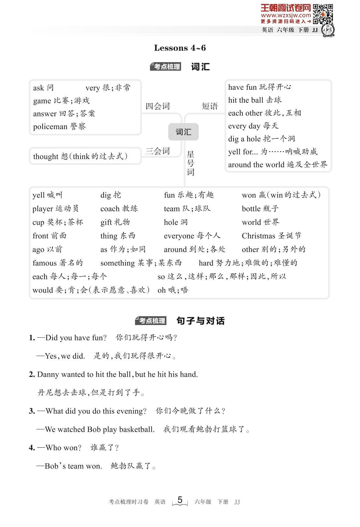 2023下册六年级英语冀教版 考点梳理手册——Unit 1 Lessons 4~6