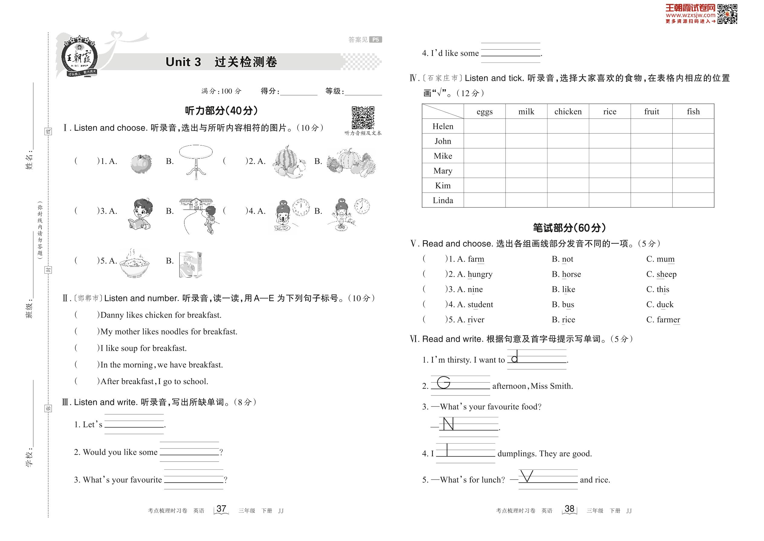 三年级英语冀教版下册单元卷