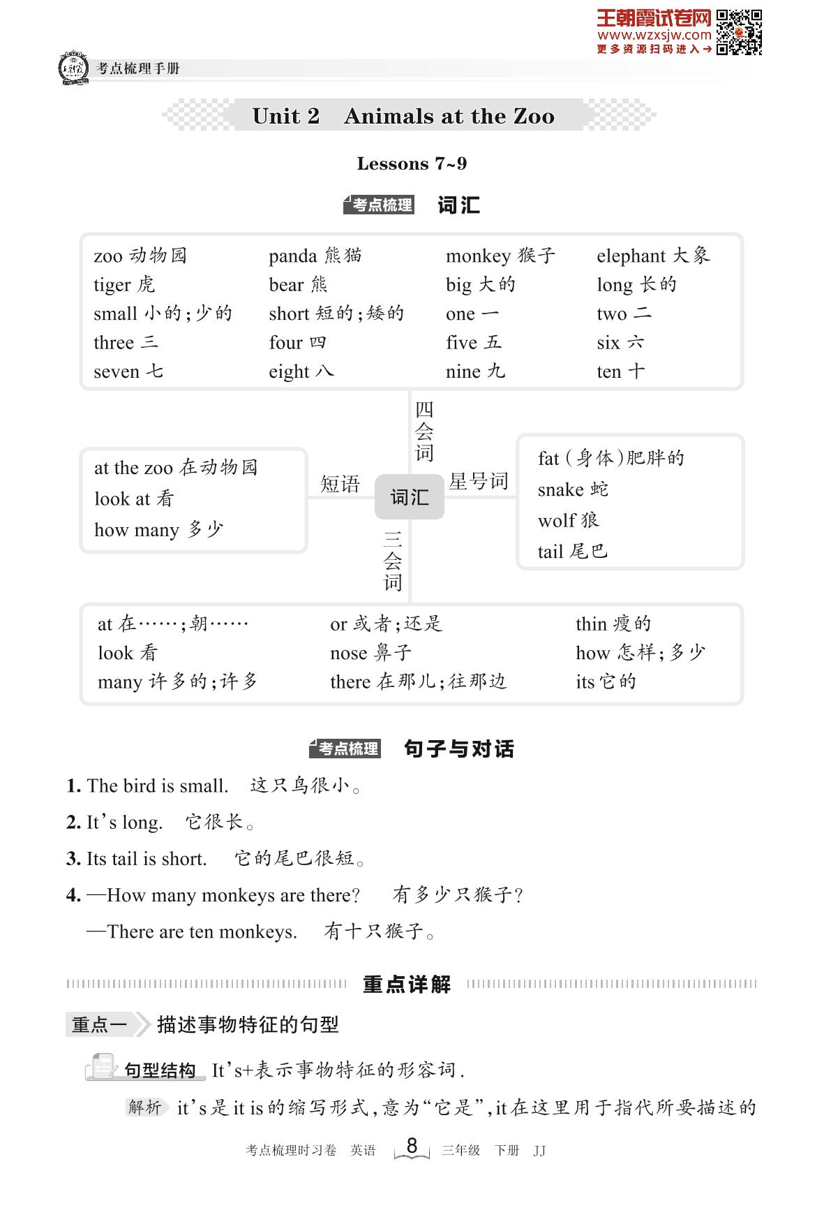 2023下册三年级英语冀教版 考点梳理手册——Unit 2 Lessons 7~9
