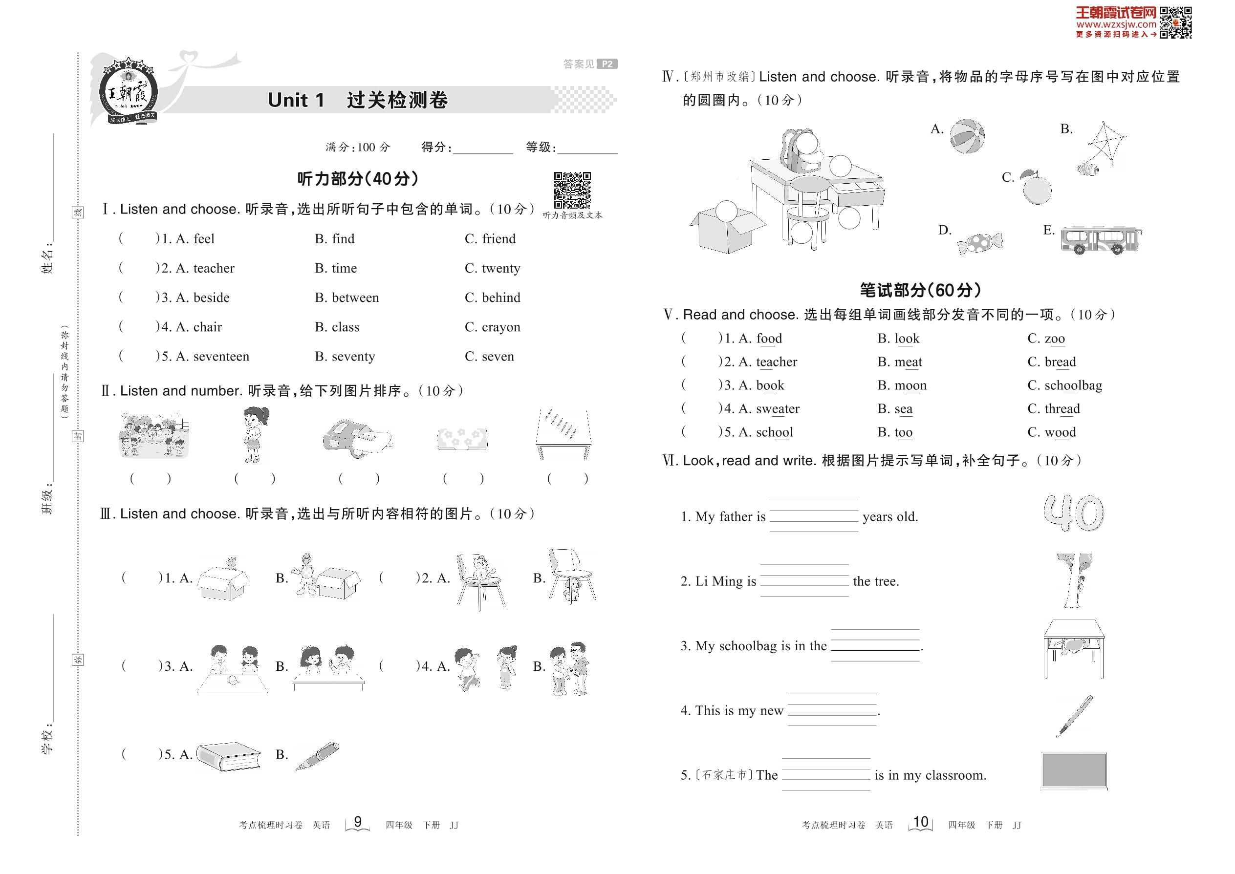 2023下册四年级英语冀教版 Unit 1 过关检测卷