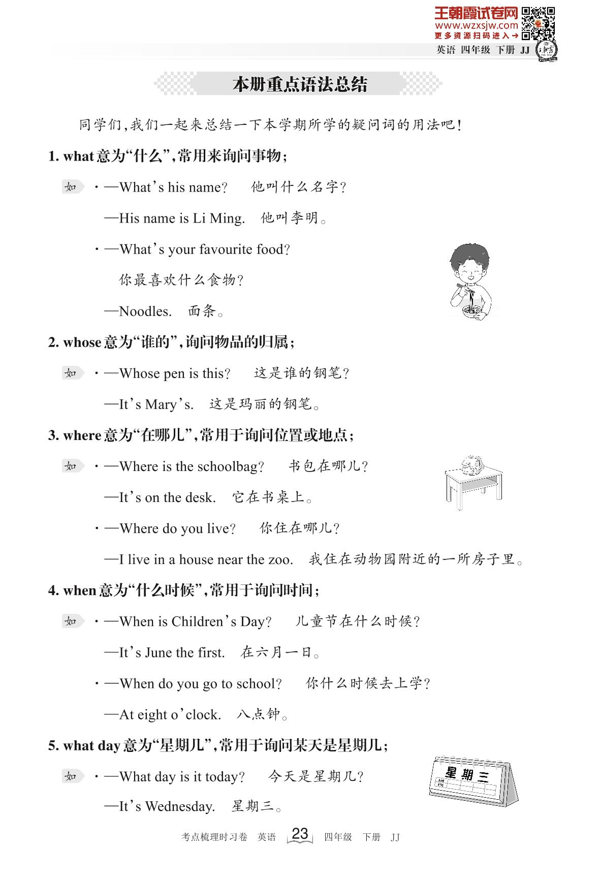 2023下册四年级英语冀教版 考点梳理手册——本册重点语法总结