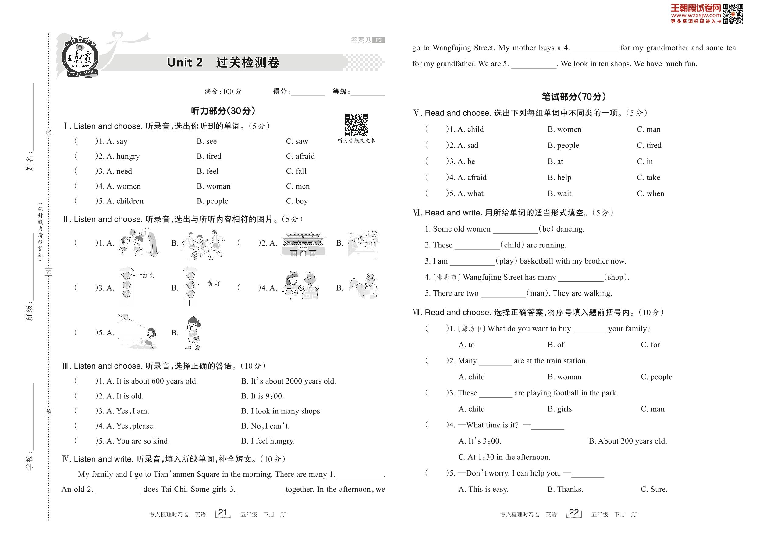 2023下册五年级英语冀教版 Unit 2 过关检测卷