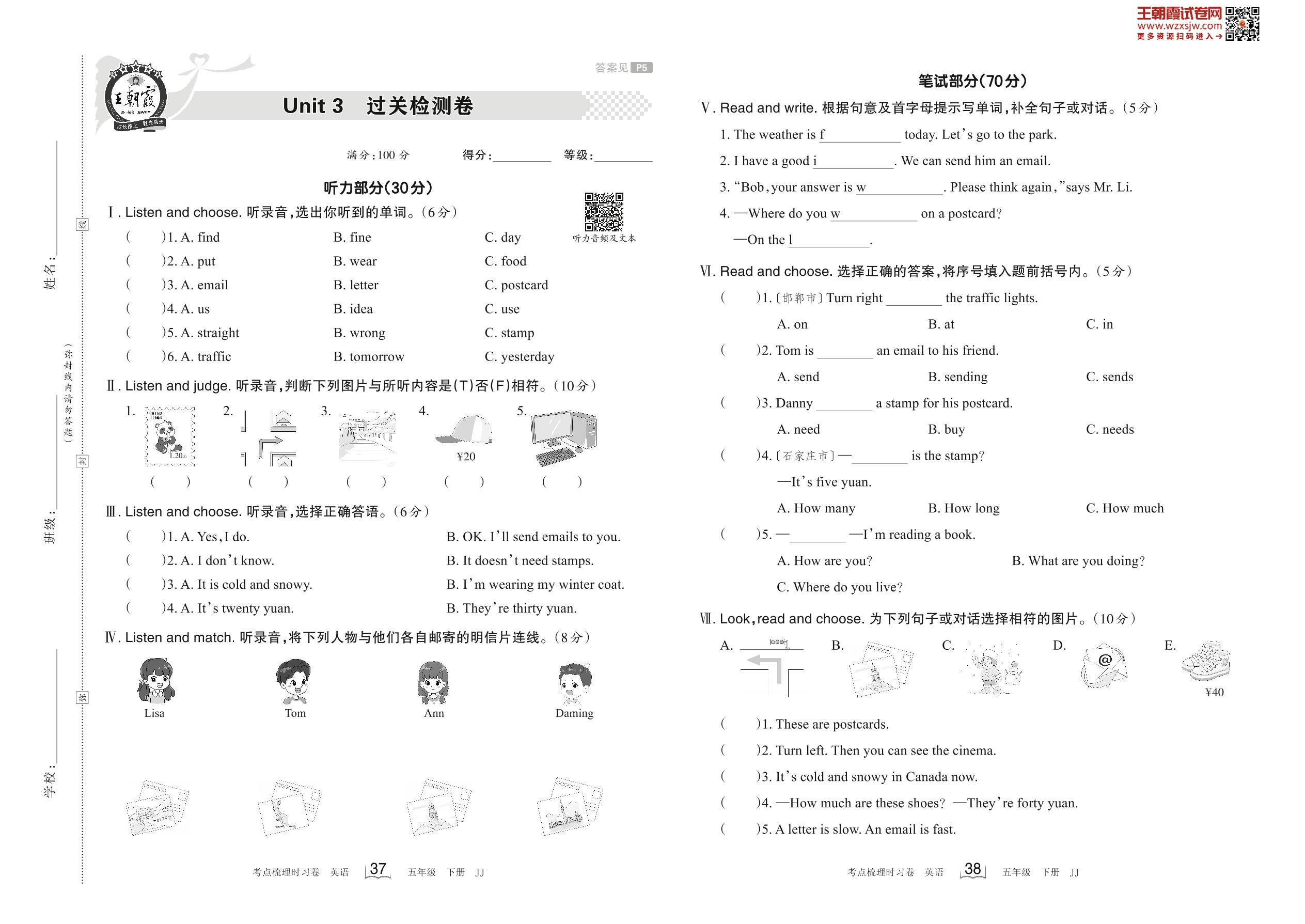 2023下册五年级英语冀教版 Unit 3 过关检测卷