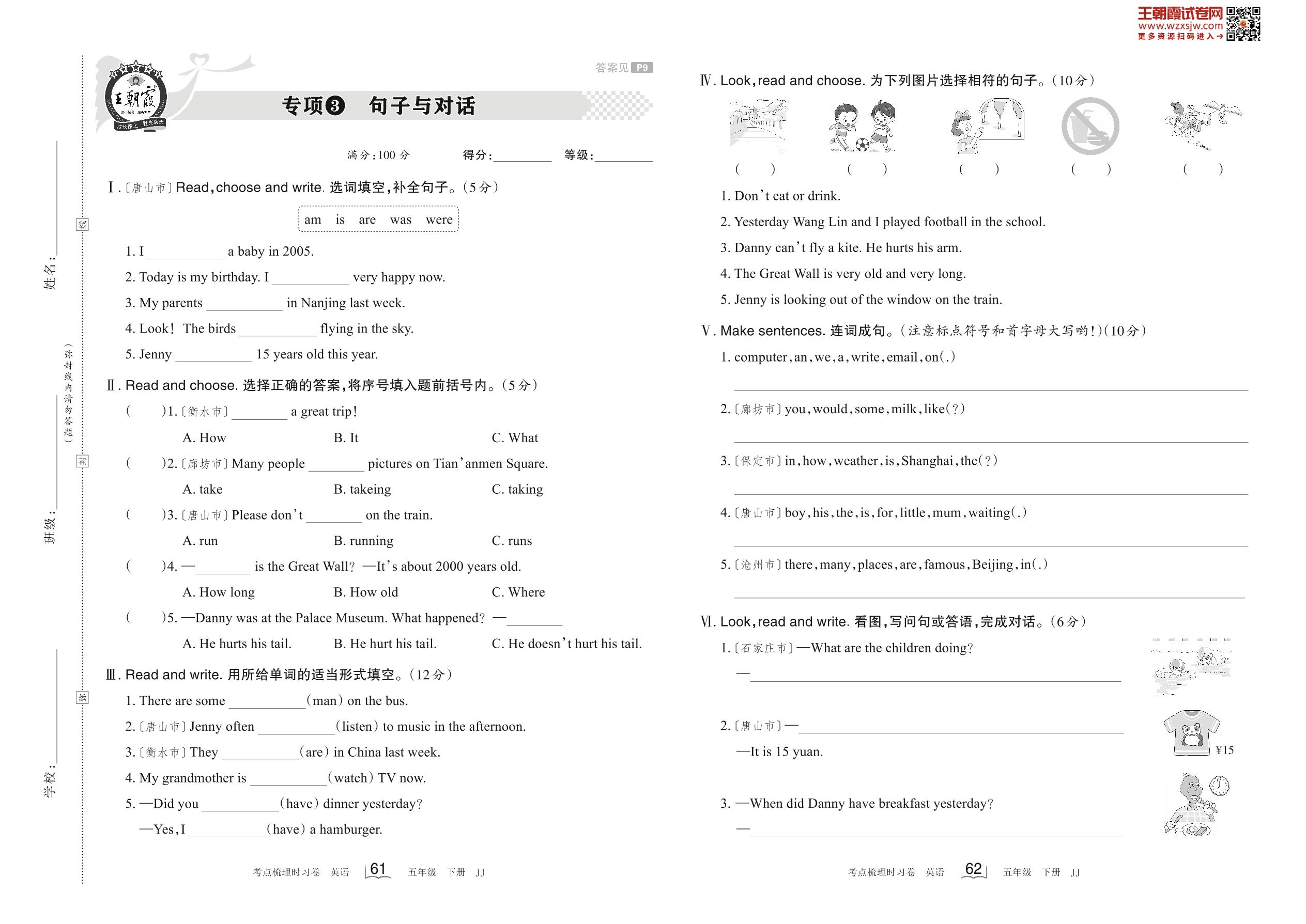 2023下册五年级英语冀教版 专项3 句子与对话