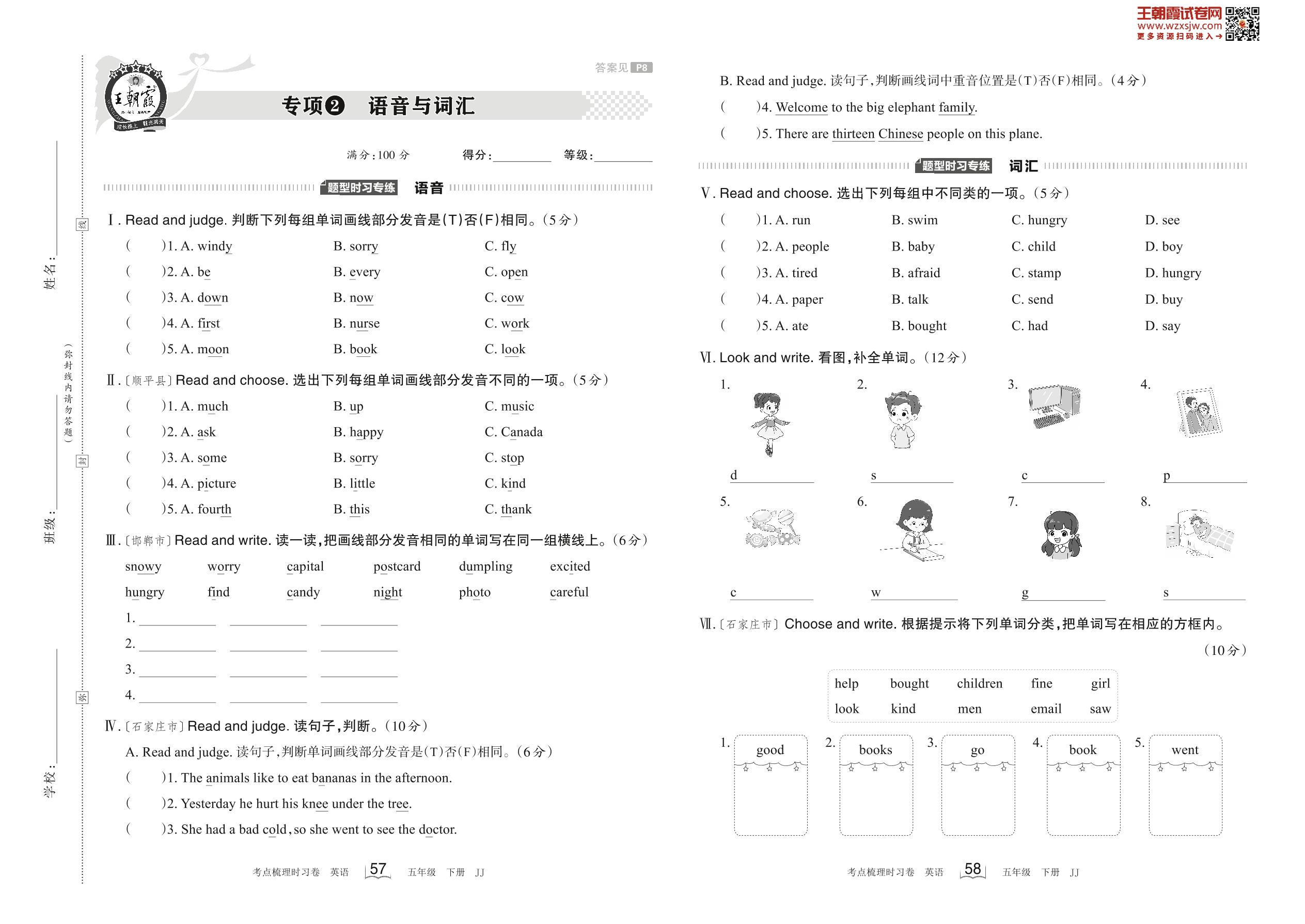 2023下册五年级英语冀教版 专项2 语音与词汇