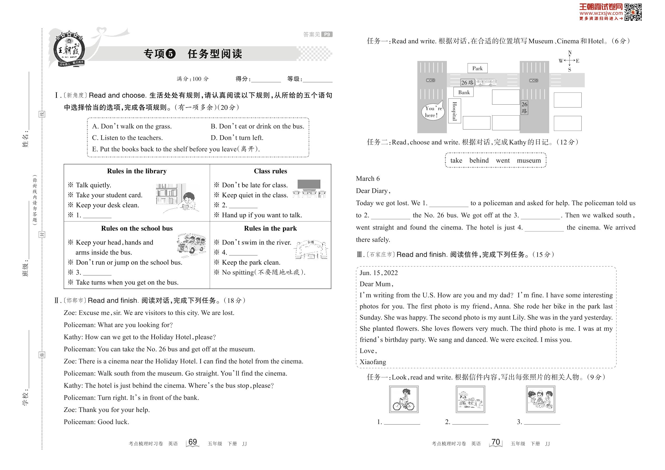 2023下册五年级英语冀教版 专项5 任务型阅读