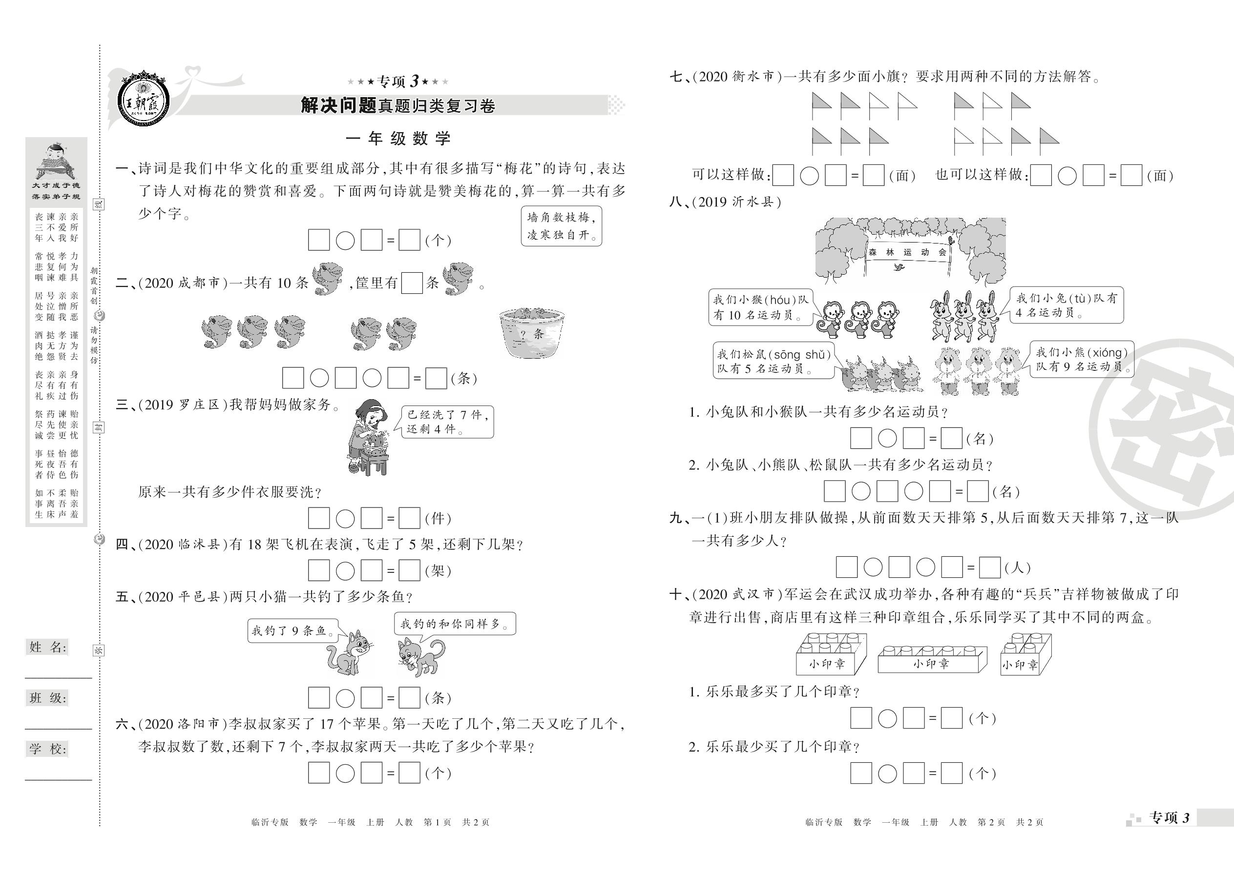 王朝霞期末专项卷——解决问题真题归类复习、新颖题速递:生活与数学一年级上册数学(人教版)【0】