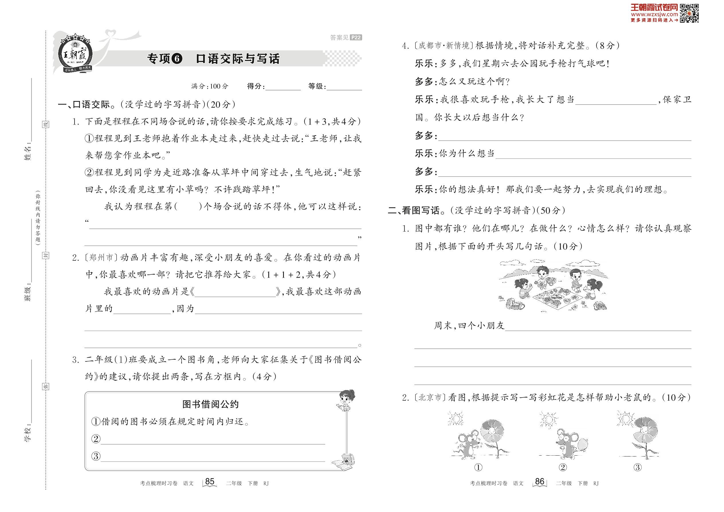 2023下册二年级语文人教版 专项6 口语交际与写话
