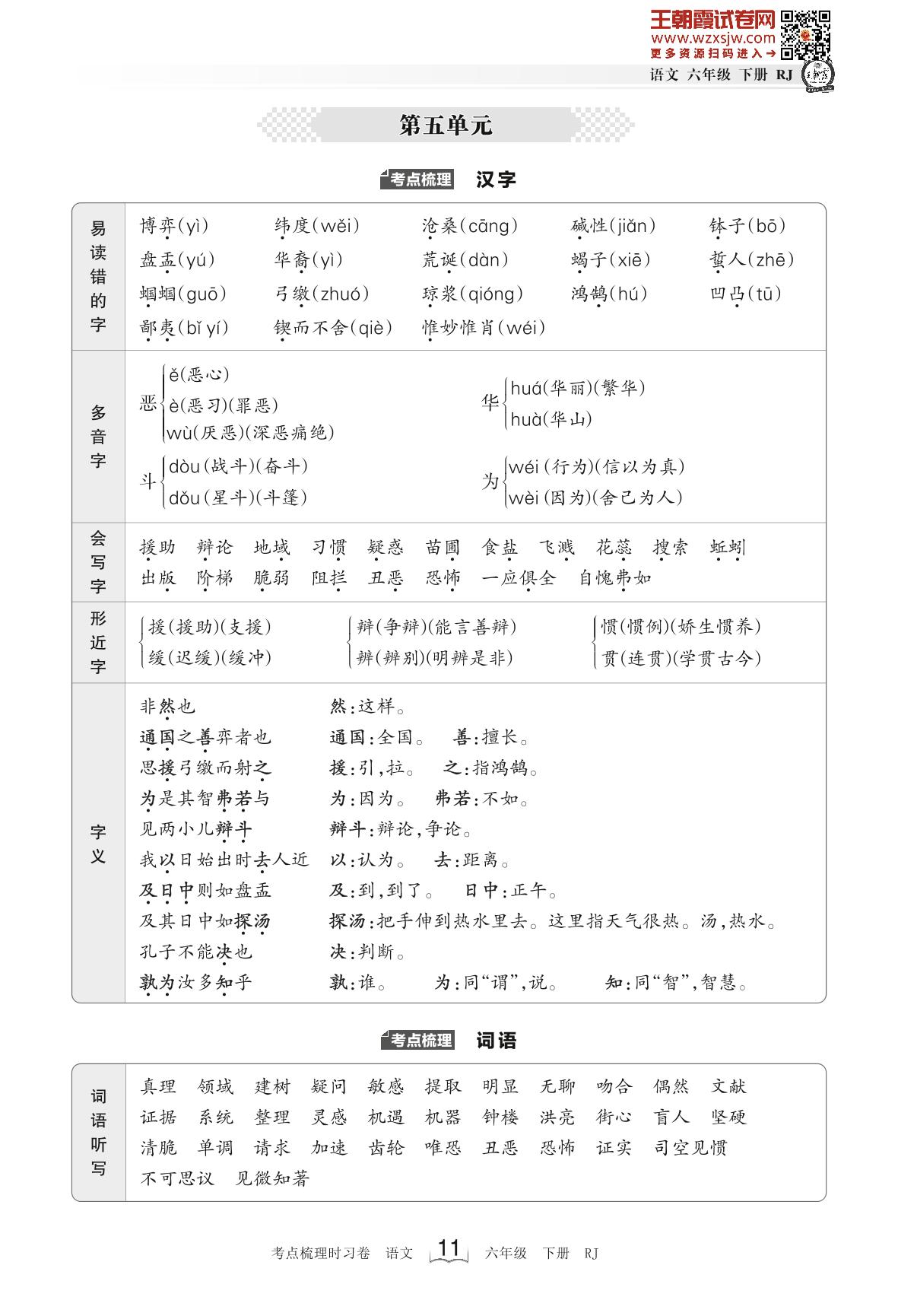 2023下册六年级语文人教版 考点梳理手册——第五单元