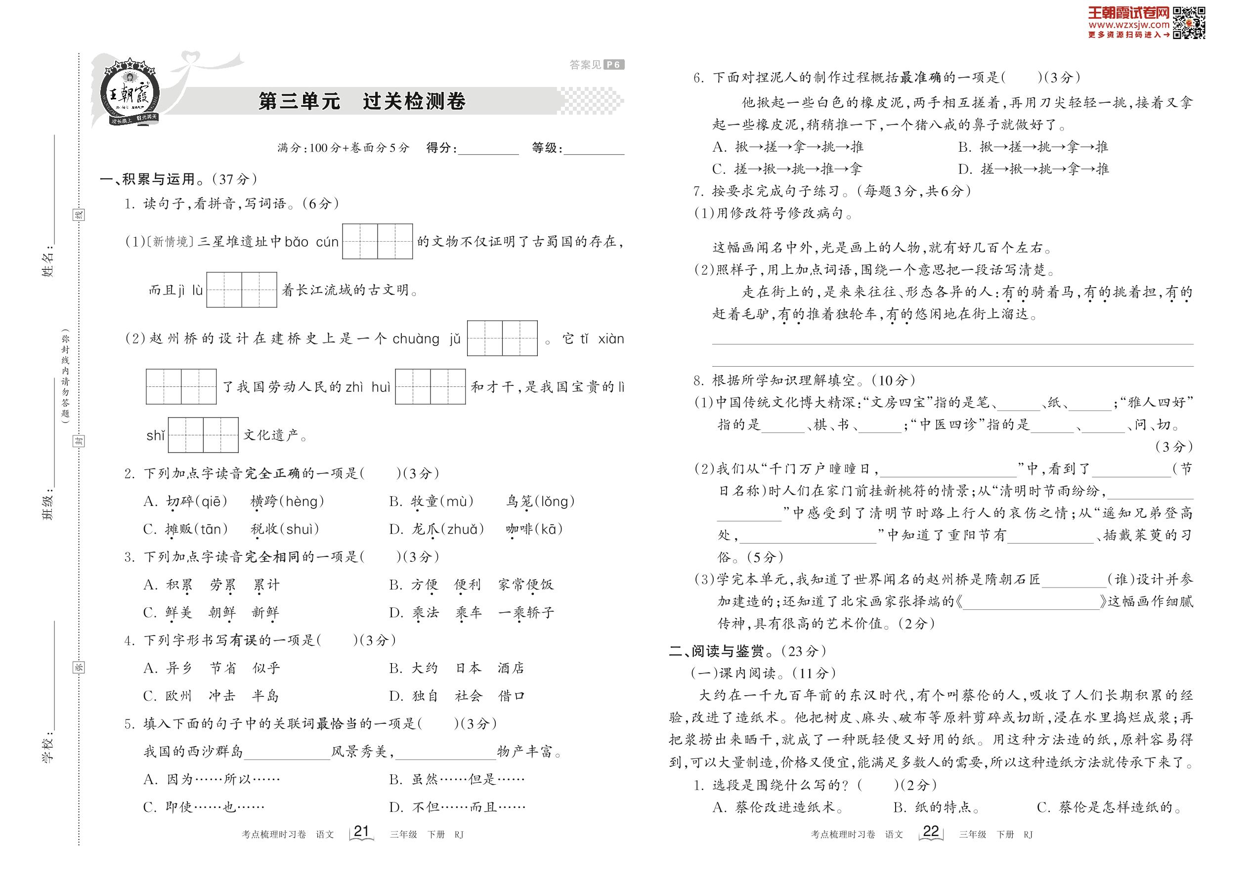 三年级语文人教版下册单元卷