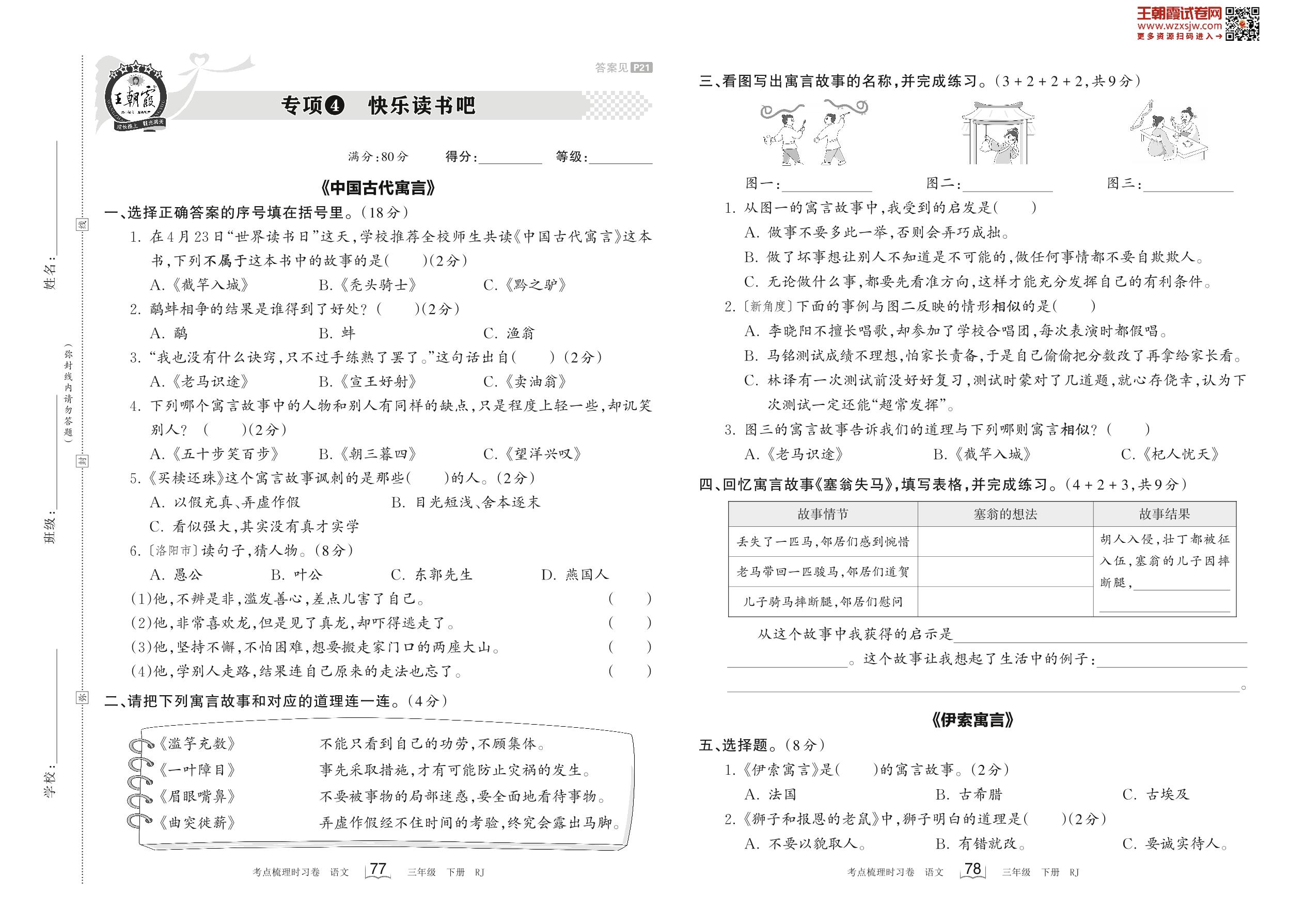 2023下册三年级语文人教版 专项4 快乐读书吧
