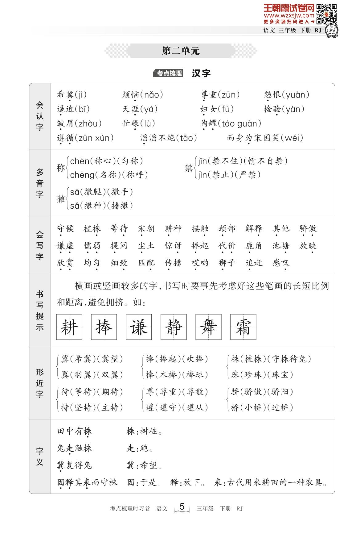 2023下册三年级语文人教版 考点梳理手册——第二单元