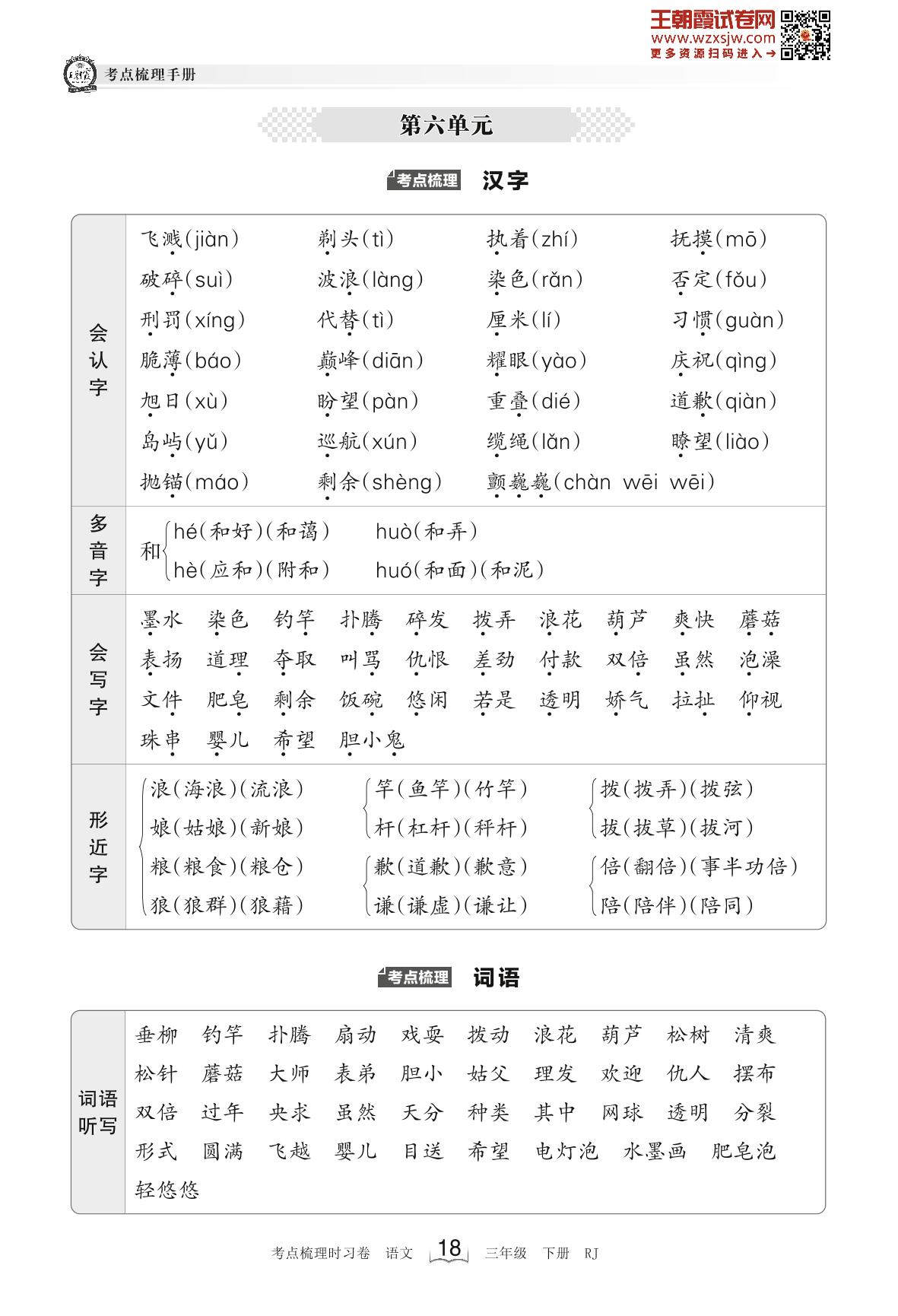 2023下册三年级语文人教版 考点梳理手册——第六单元