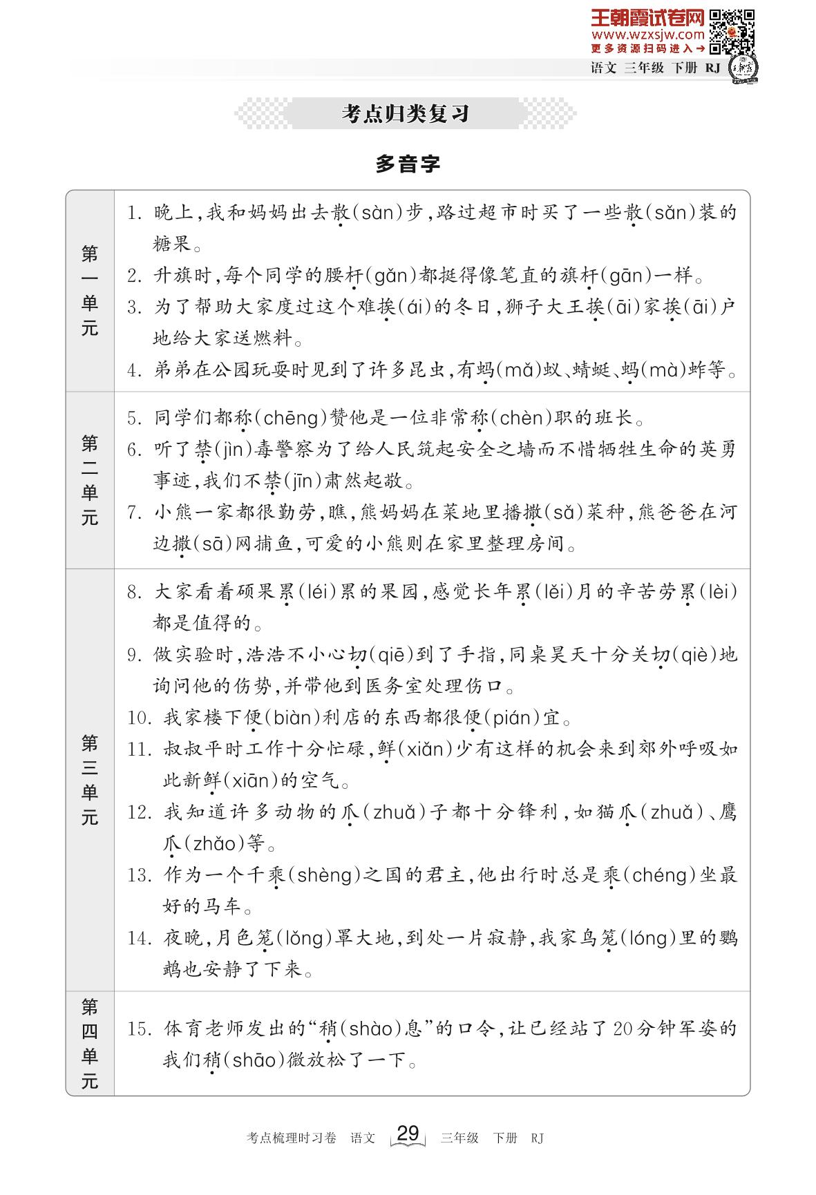 2023下册三年级语文人教版 考点梳理手册——考点归类复习