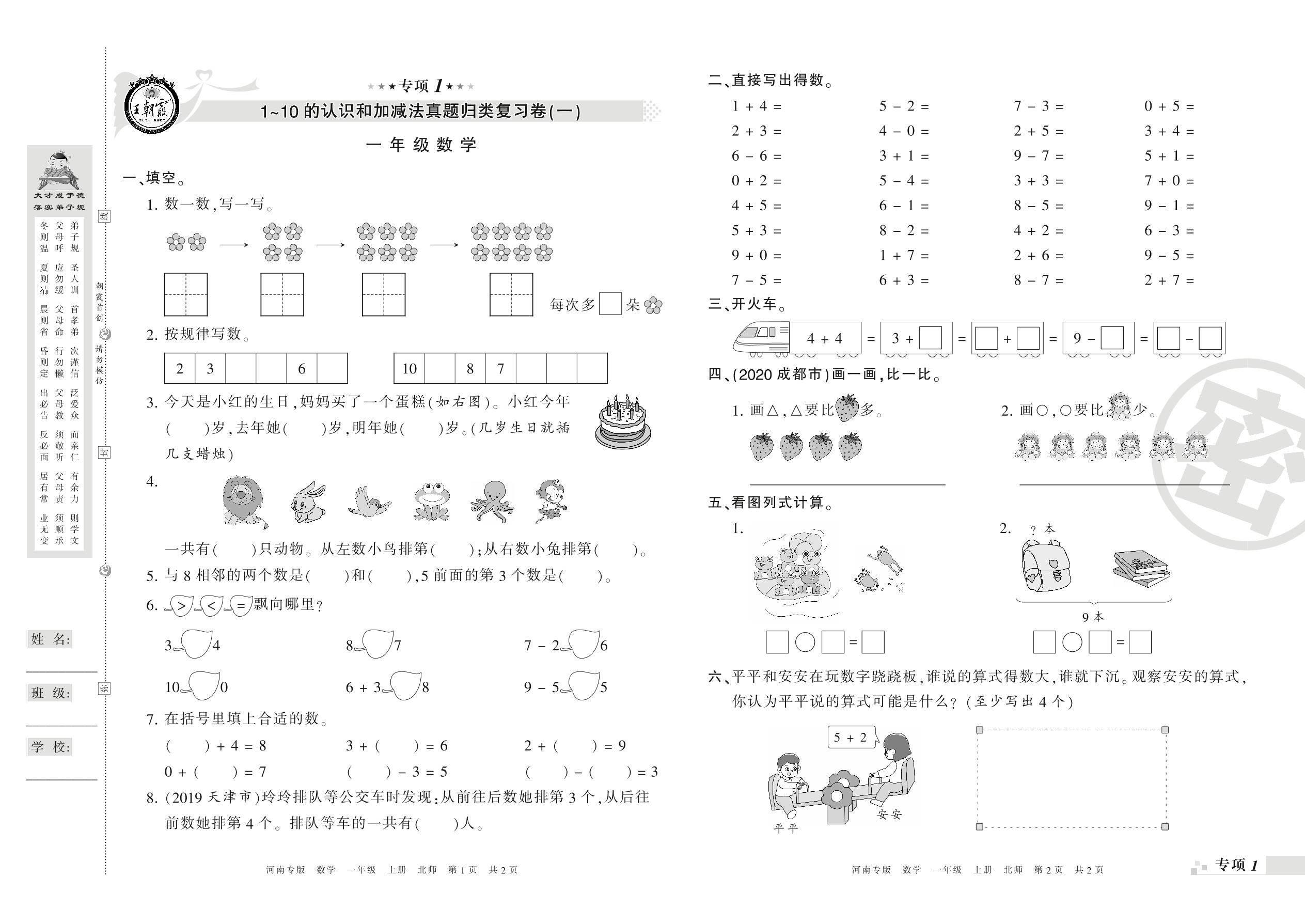 一年级数学北师版上册专项卷