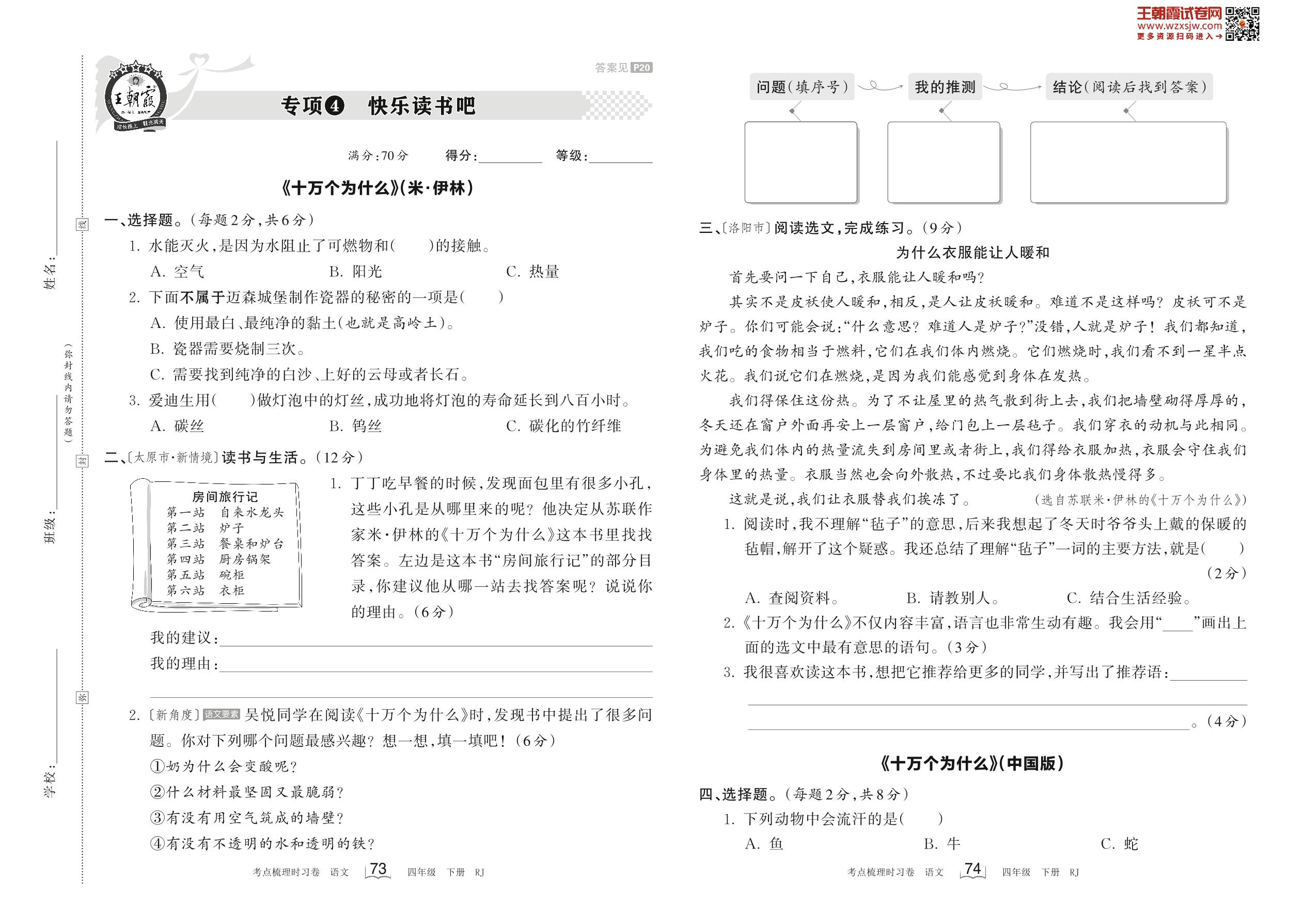 2023下册四年级语文人教版 专项4 快乐读书吧