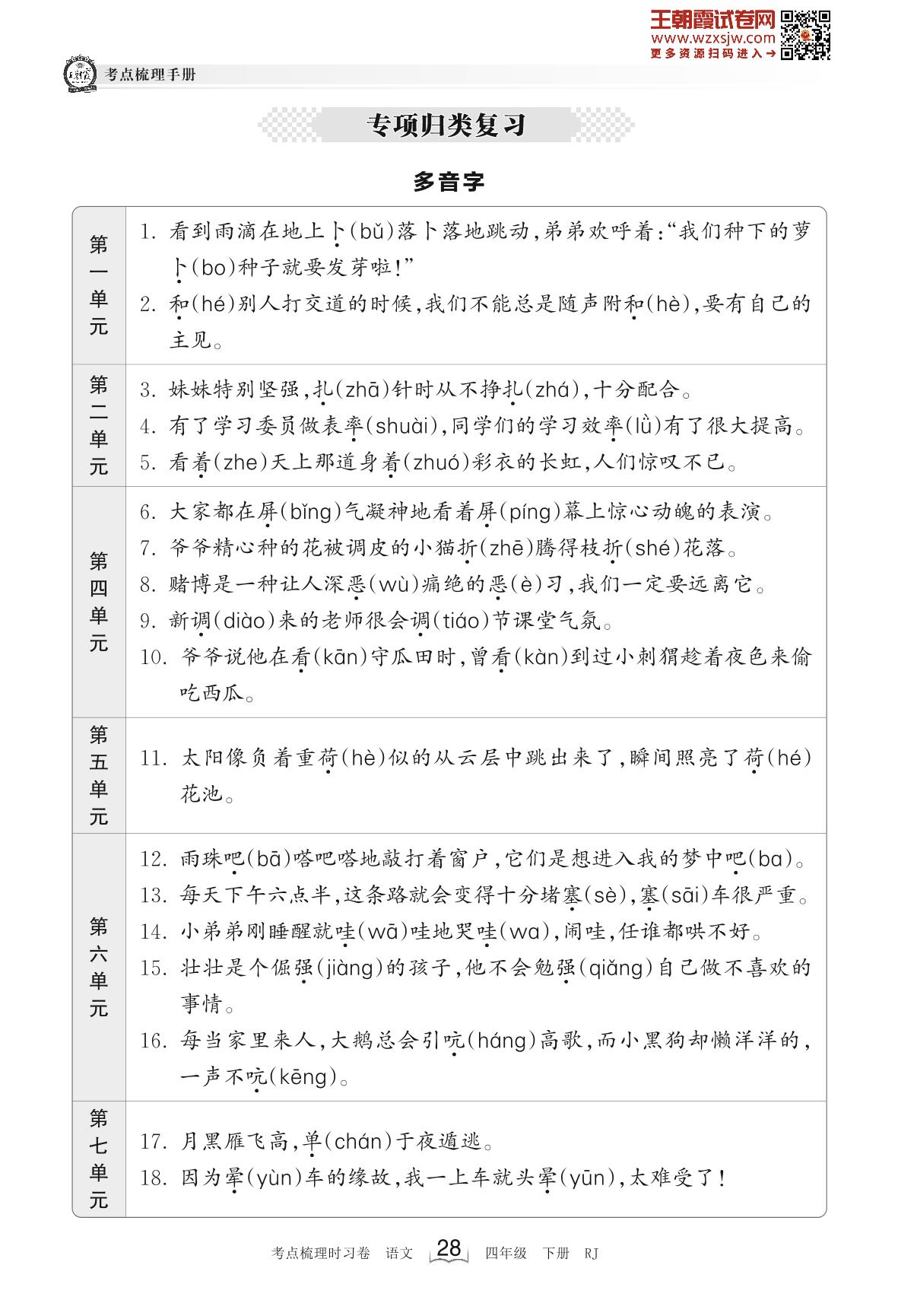 2023下册四年级语文人教版 考点梳理手册——专项归类复习