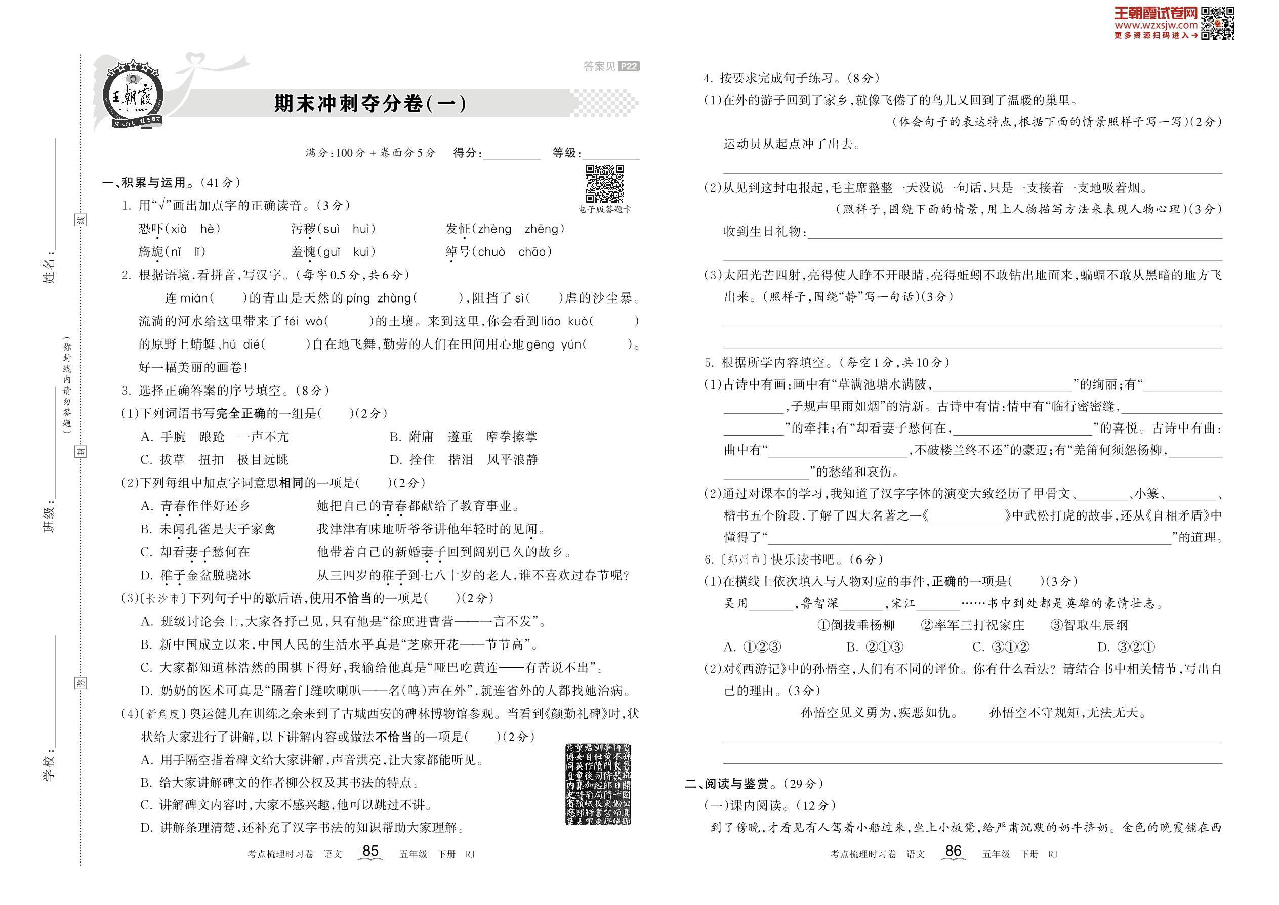 五年级语文人教版下册期末卷