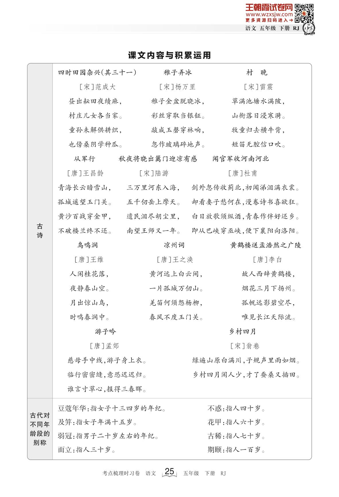 2023下册五年级语文人教版 考点梳理手册——专项归类复习 课文内容与积累运用