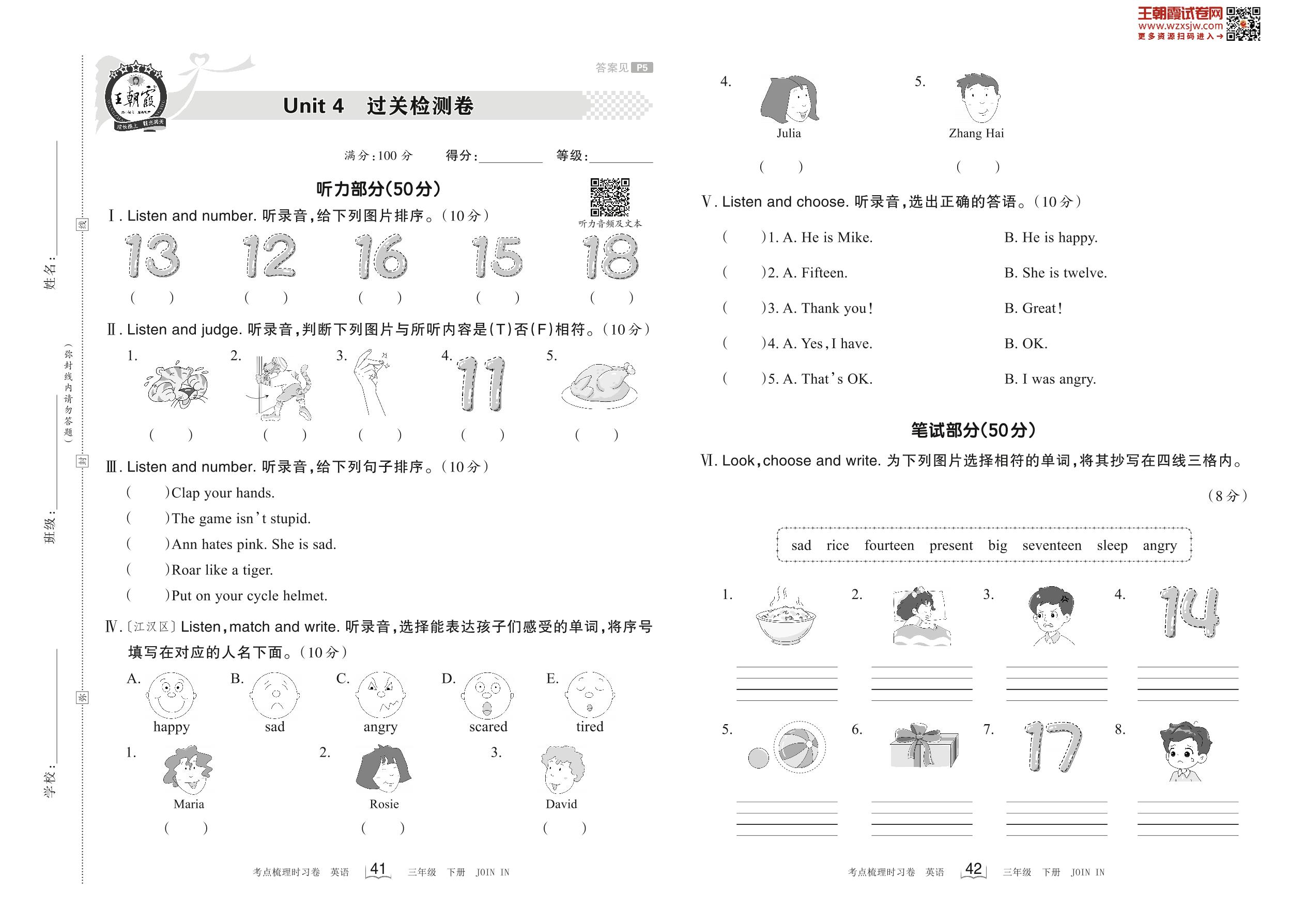 2023下册三年级英语剑桥版 Unit 4 过关检测卷
