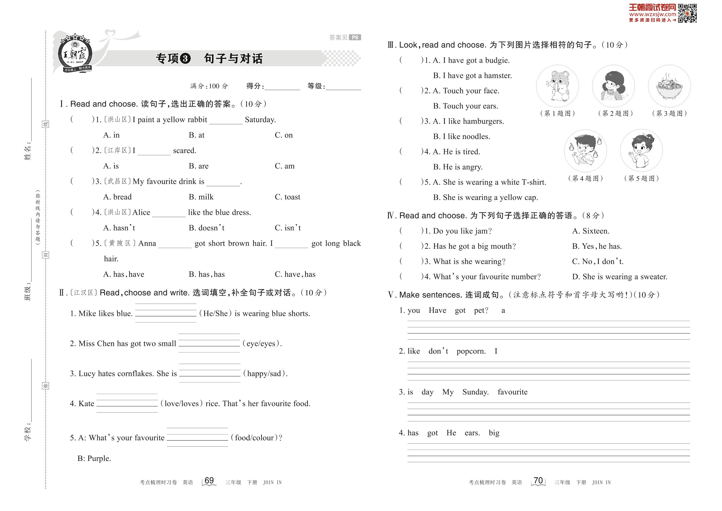 2023下册三年级英语剑桥版 专项3 句子与对话