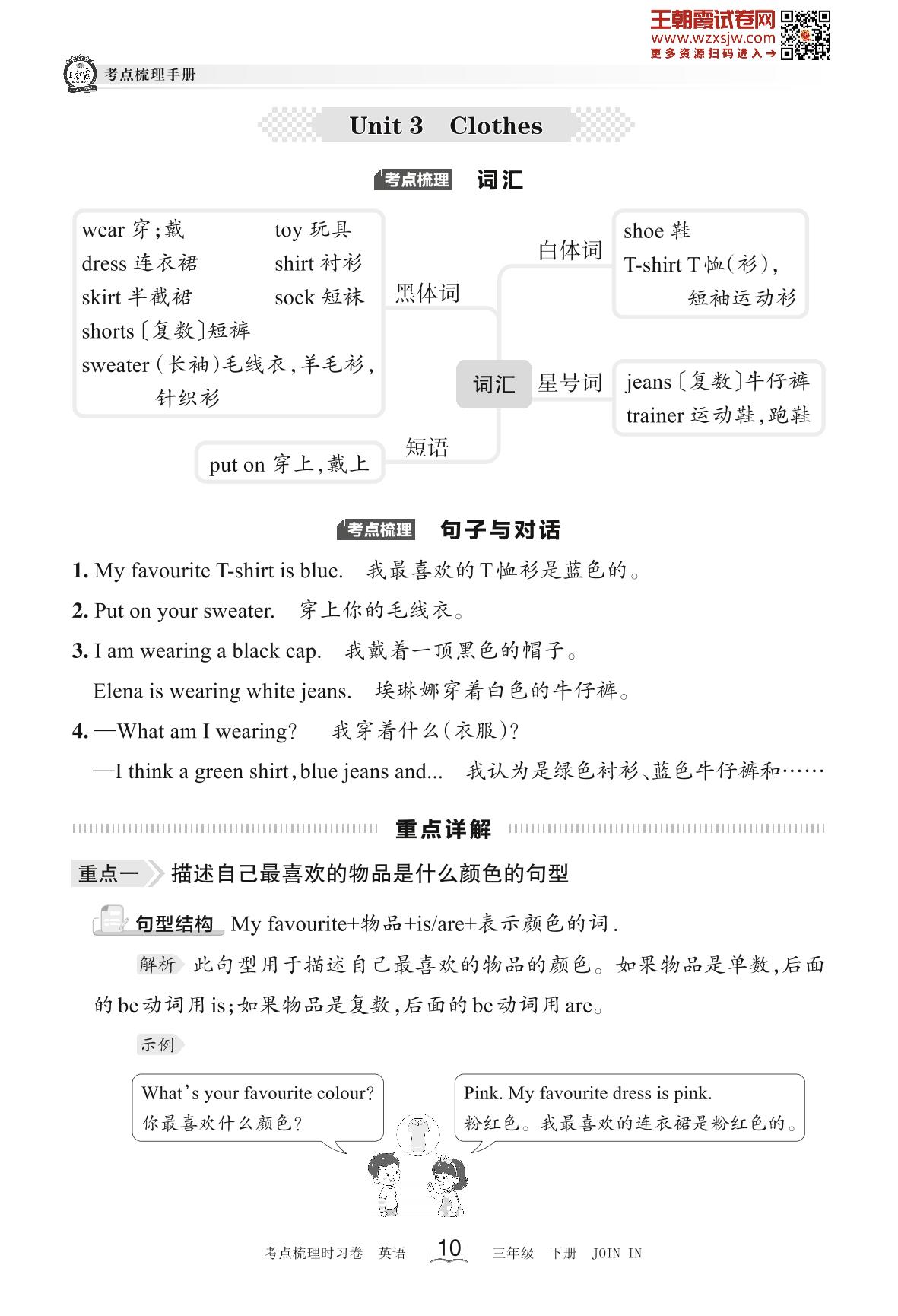 2023下册三年级英语剑桥版 考点梳理手册——Unit 3 Clothes