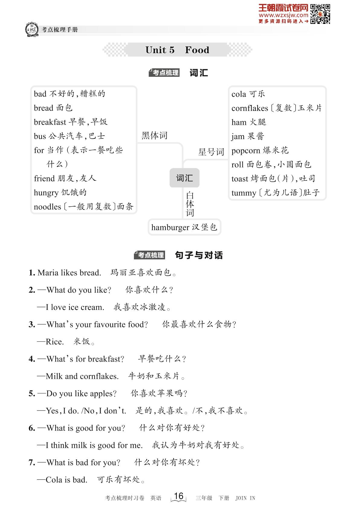 2023下册三年级英语剑桥版 考点梳理手册——Unit 5 Food