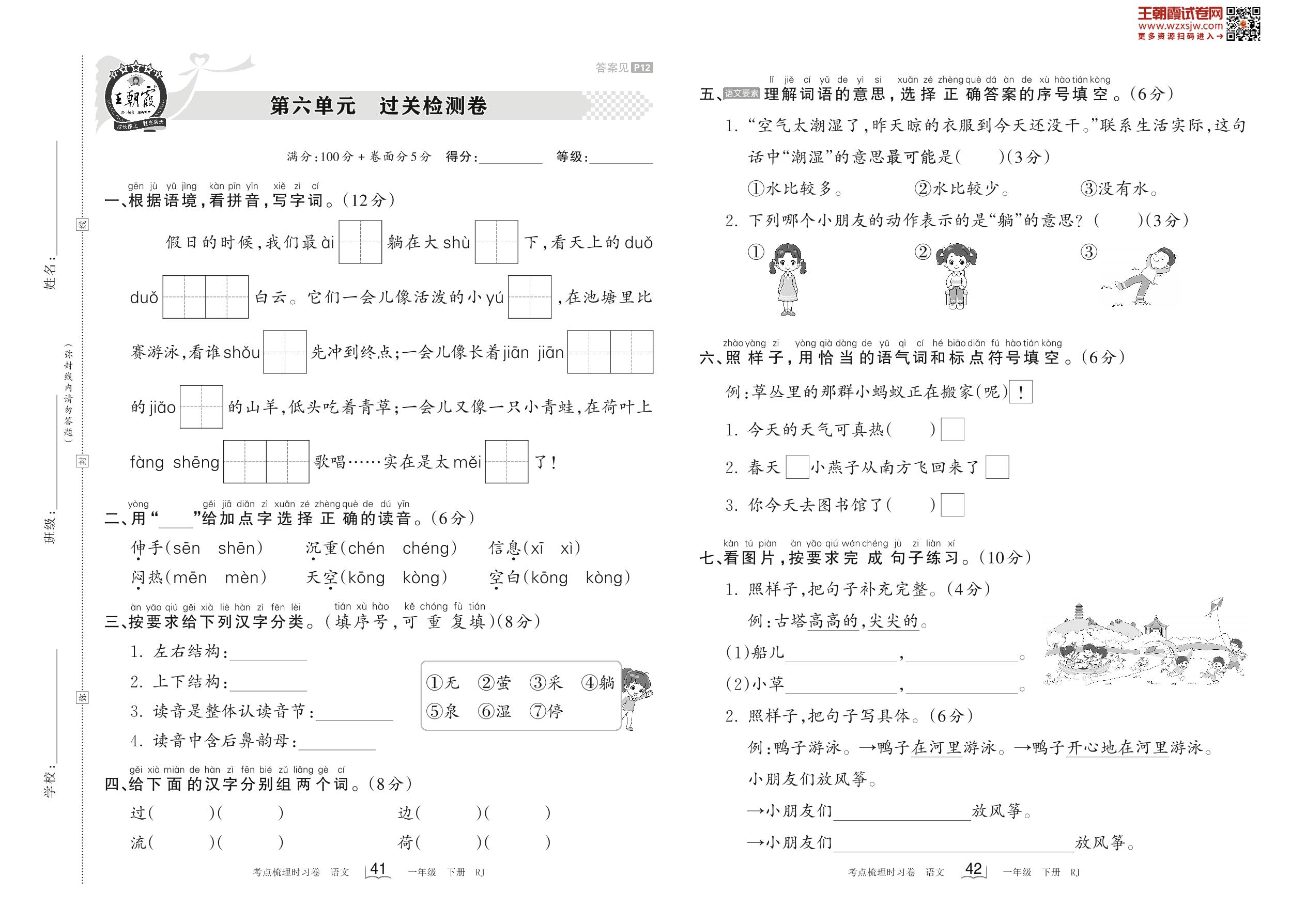 2023下册一年级语文人教版 第六单元 过关检测卷