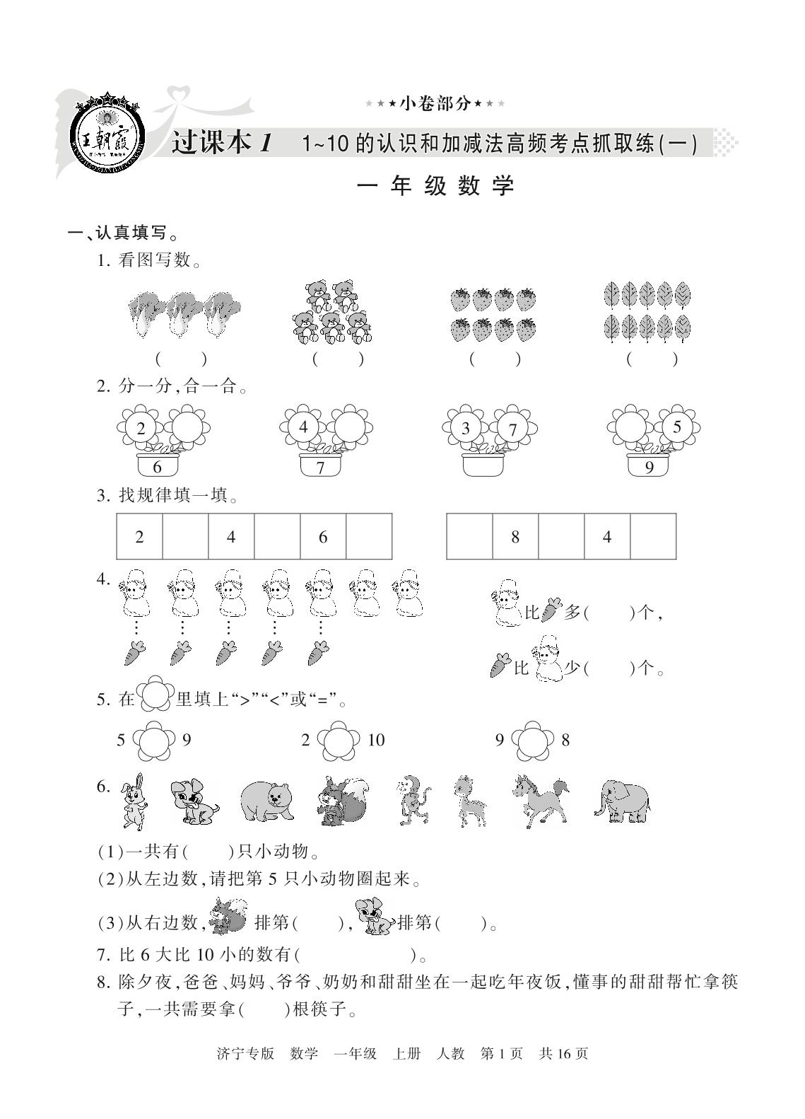 王朝霞期末过课本一年级上册数学(人教版)_R210802211835【0】