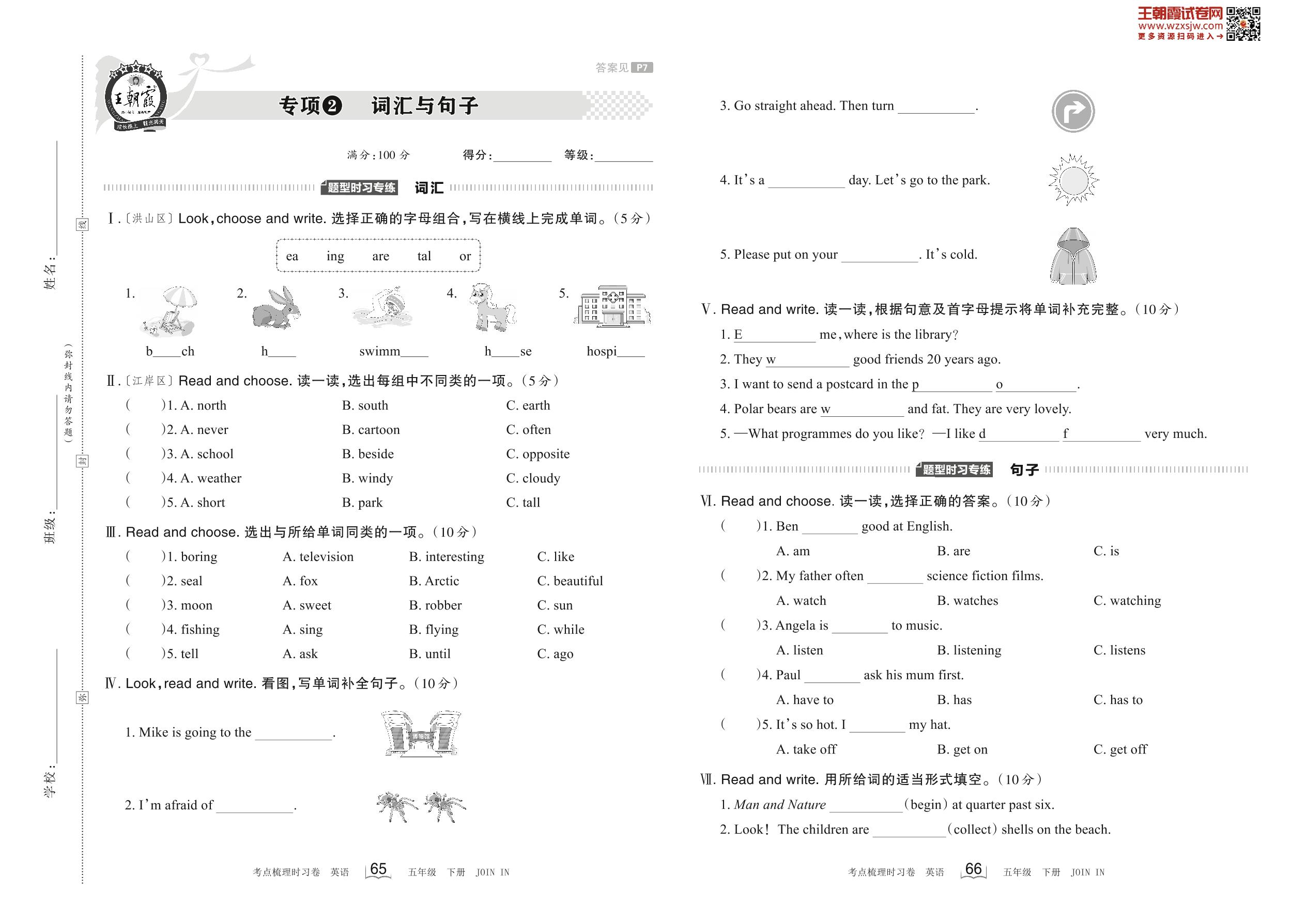 2023下册五年级英语剑桥版 专项2 词汇与句子