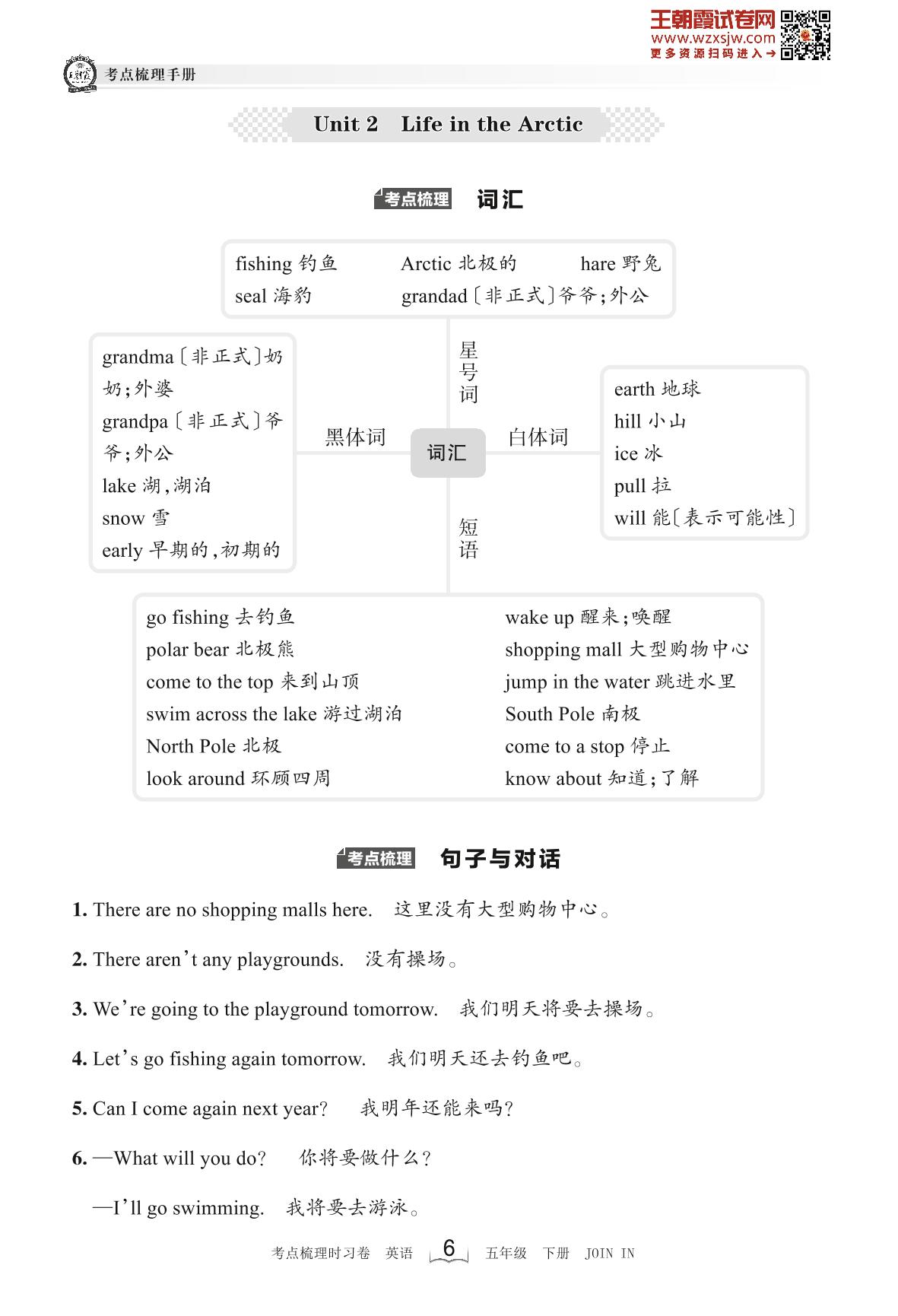 2023下册五年级英语剑桥版 考点梳理手册——Unit 2 Life in the Arctic