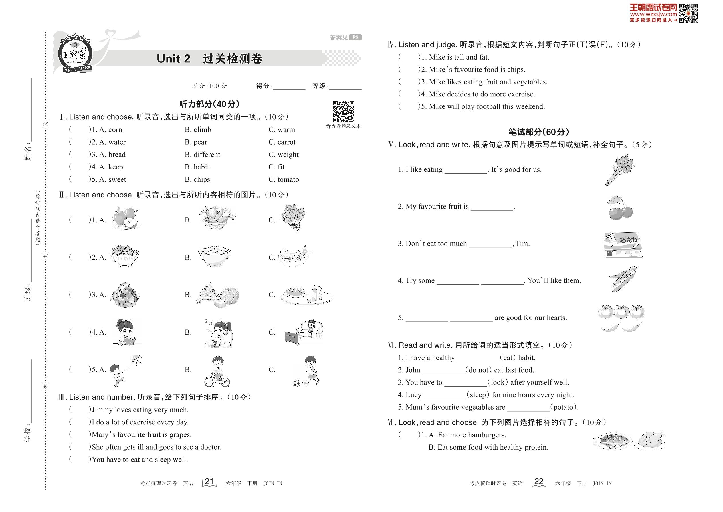 2023下册六年级英语剑桥版 Unit 2 过关检测卷