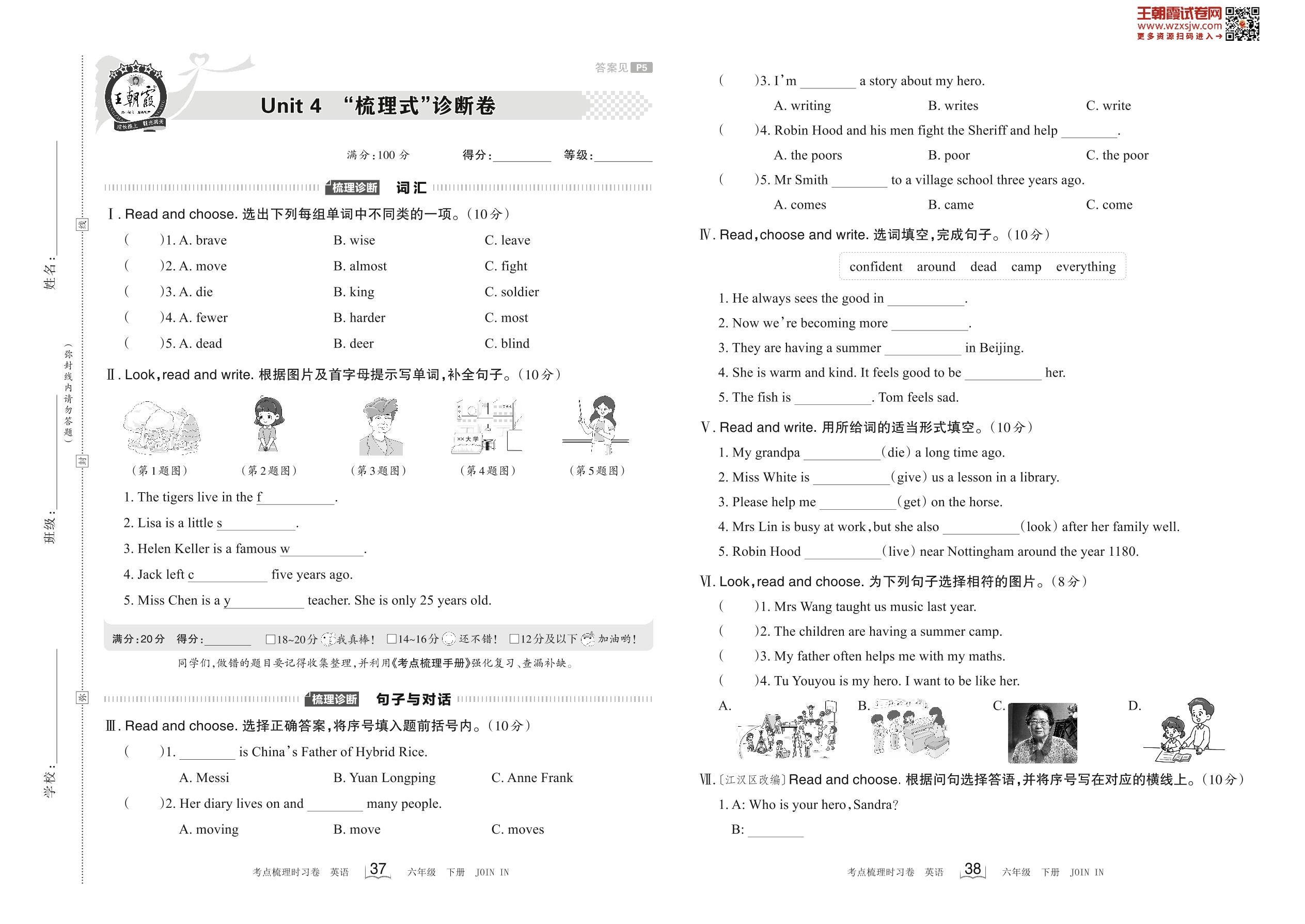 2023下册六年级英语剑桥版 Unit 4 “梳理式”诊断卷