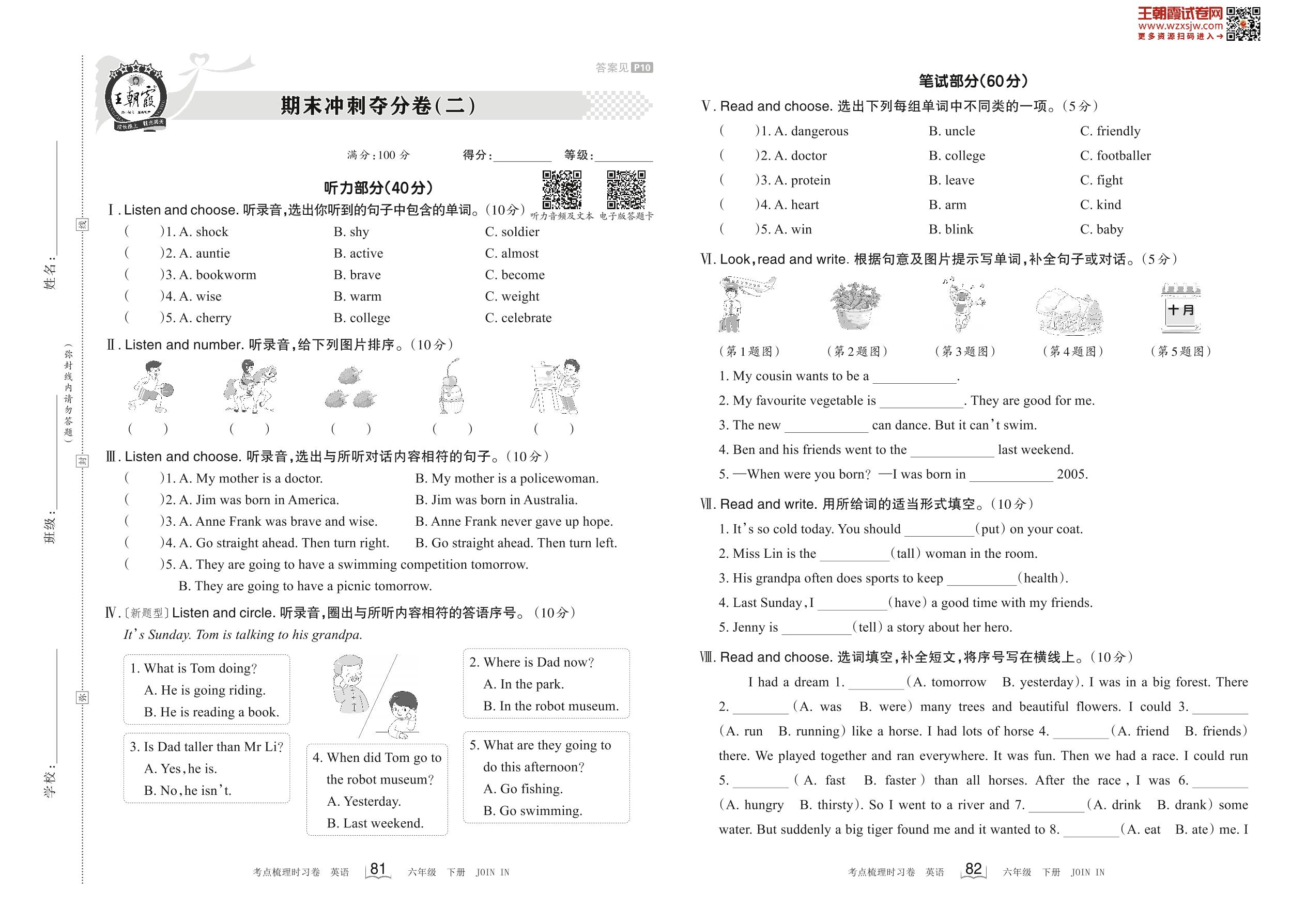 2023下册六年级英语剑桥版 期末冲刺夺分卷(二)