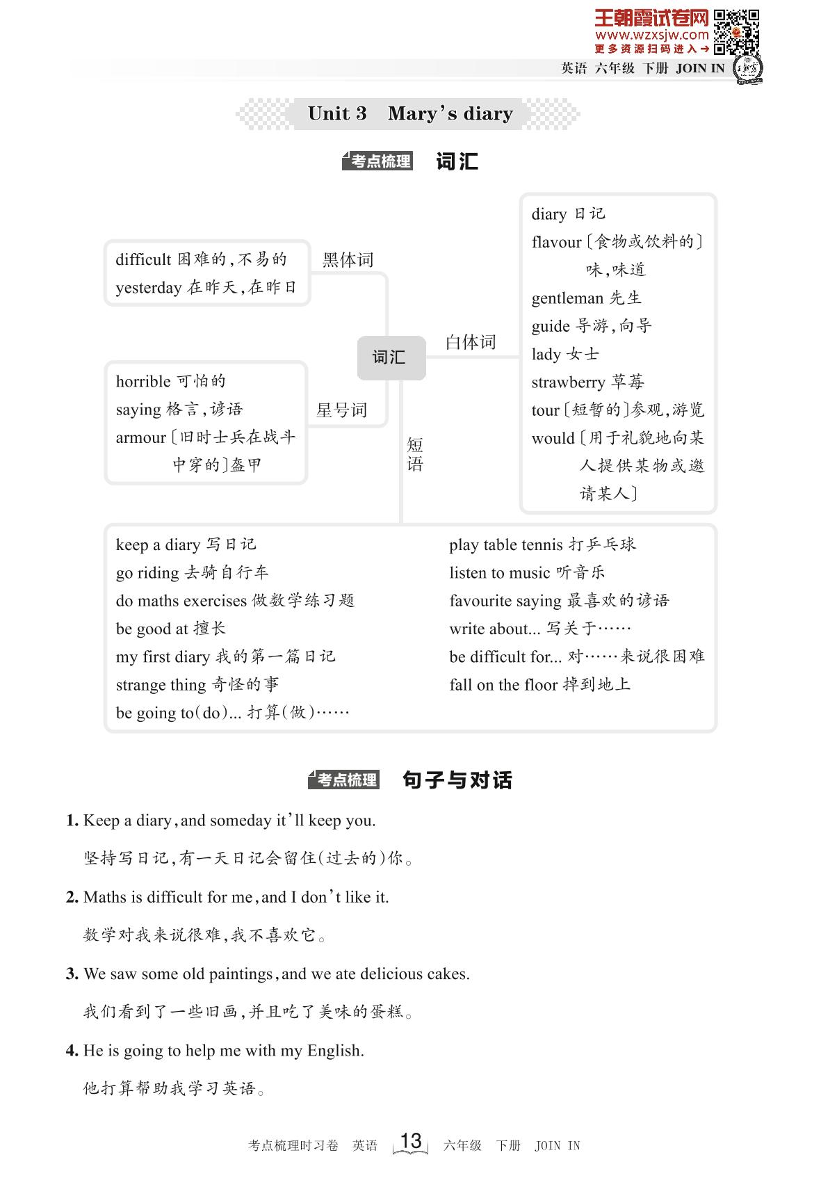 2023下册六年级英语剑桥版 考点梳理手册——Unit 3 Mary’s diary