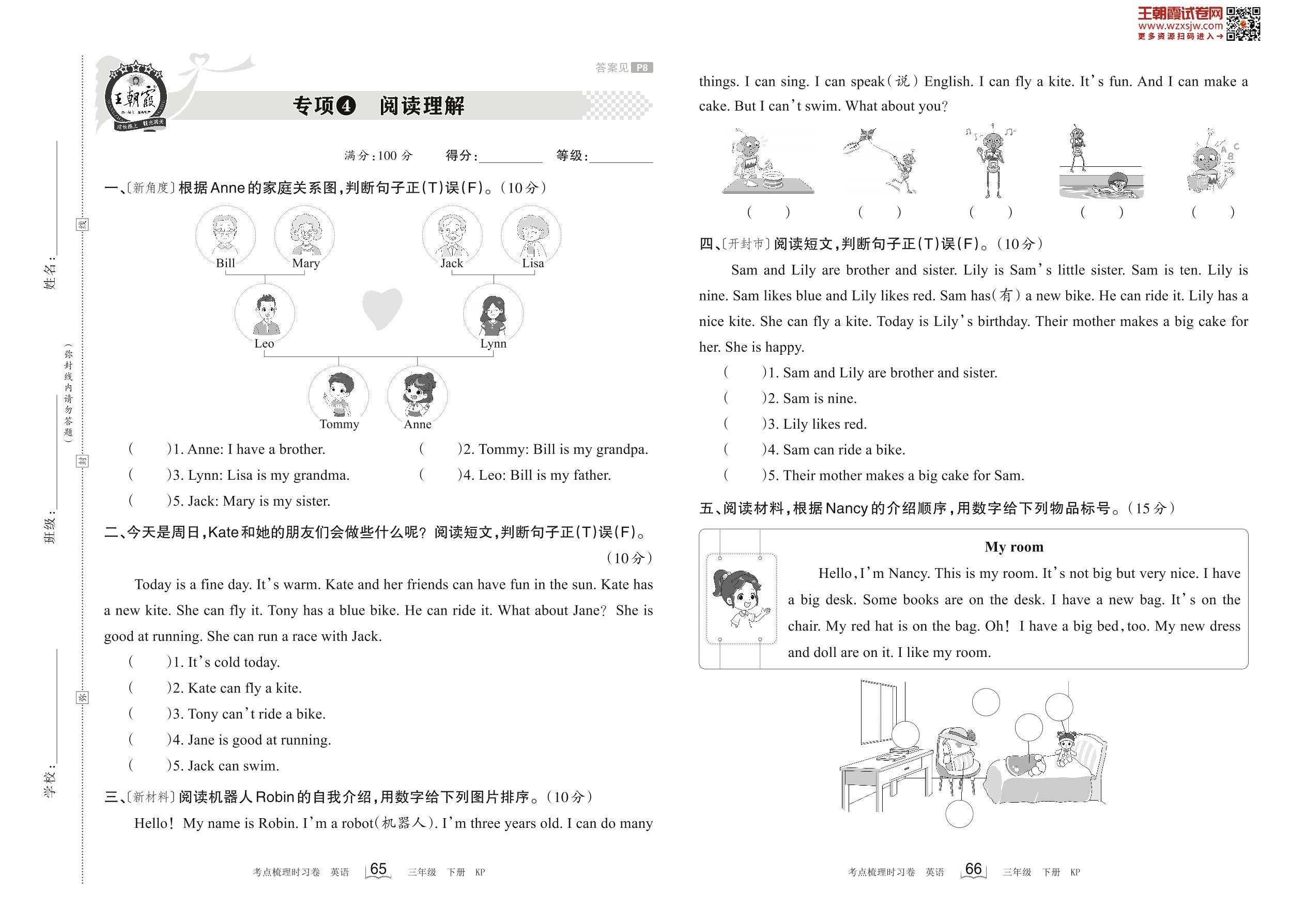 2023下册三年级英语科普版 专项4 阅读理解
