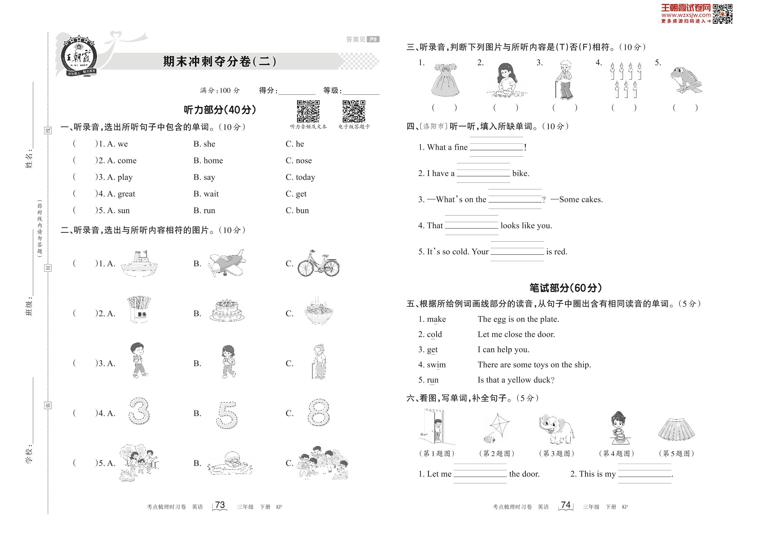 2023下册三年级英语科普版 期末冲刺夺分卷(二)