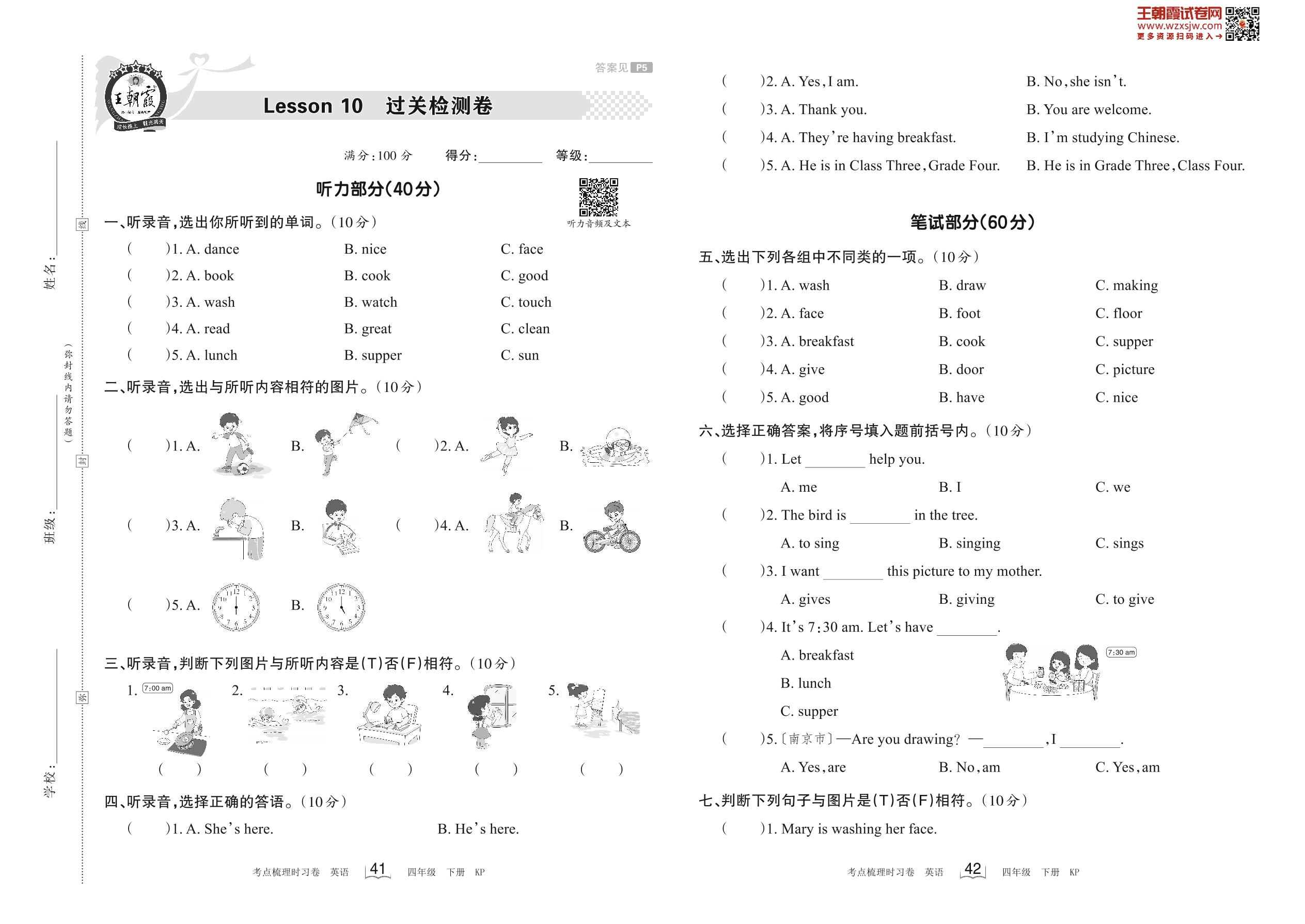 2023下册四年级英语科普版 Lesson 10 过关检测卷