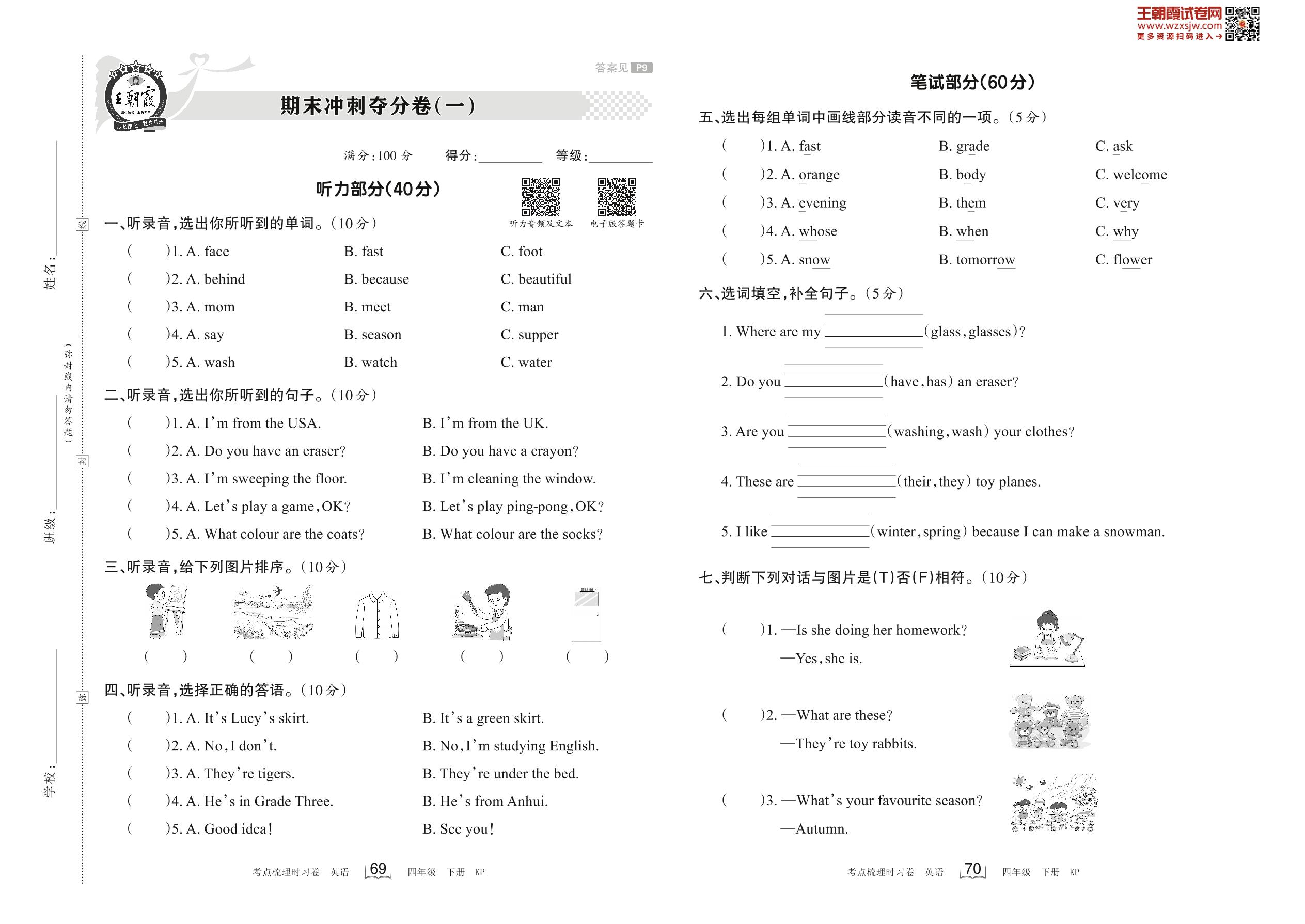 2023下册四年级英语科普版 期末冲刺夺分卷(一)