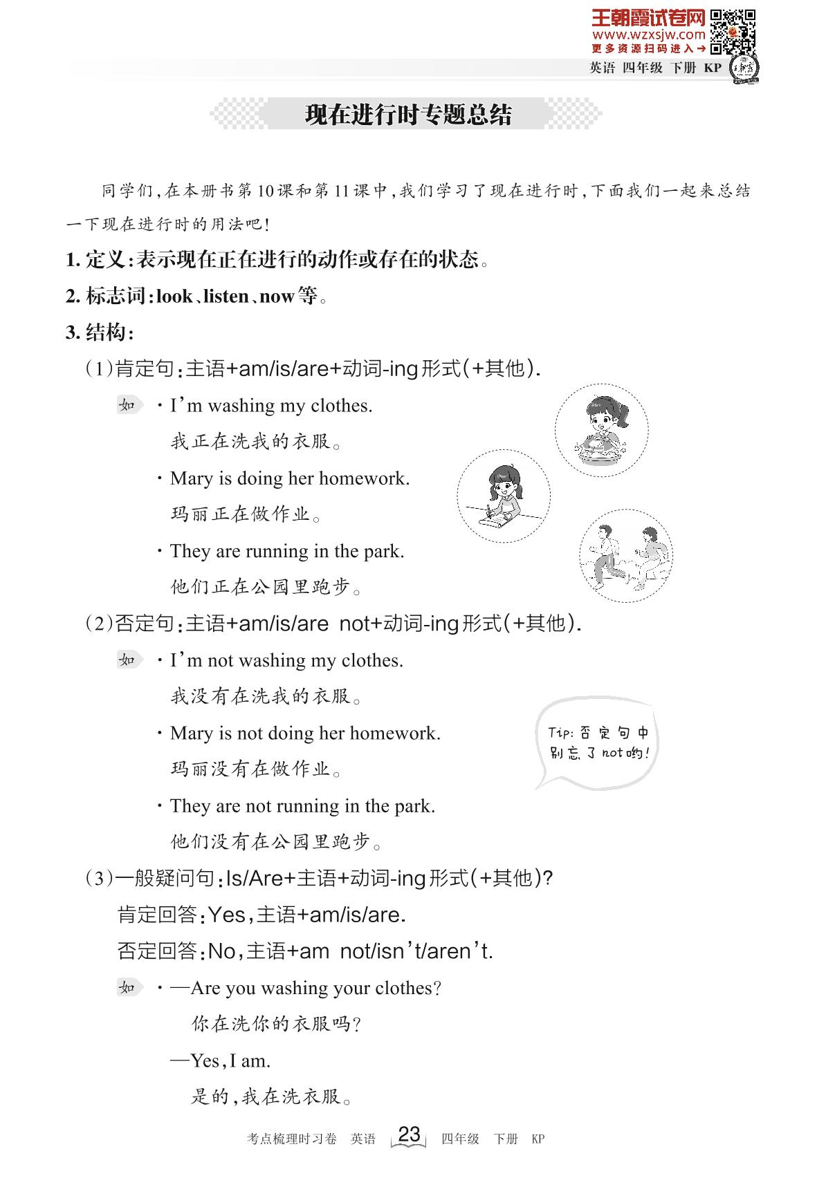 2023下册四年级英语科普版 考点梳理手册——现在进行时专题总结