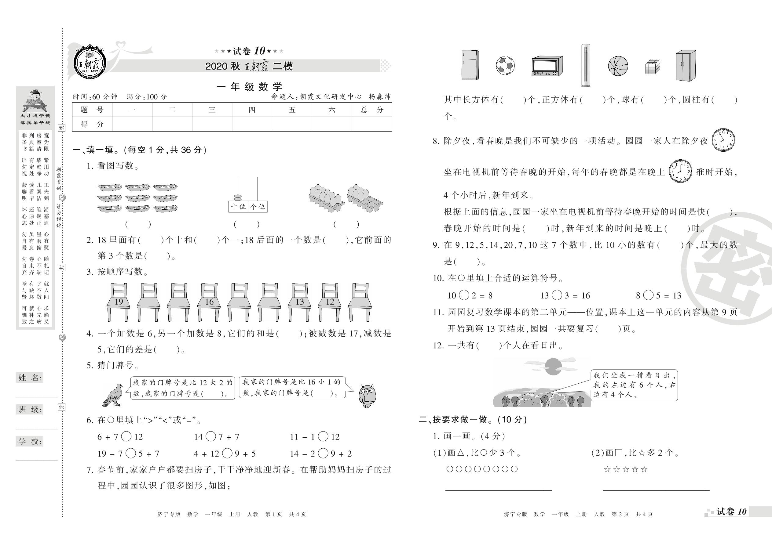 王朝霞期末模拟卷一年级上册数学(人教版)_R210802211928【10】