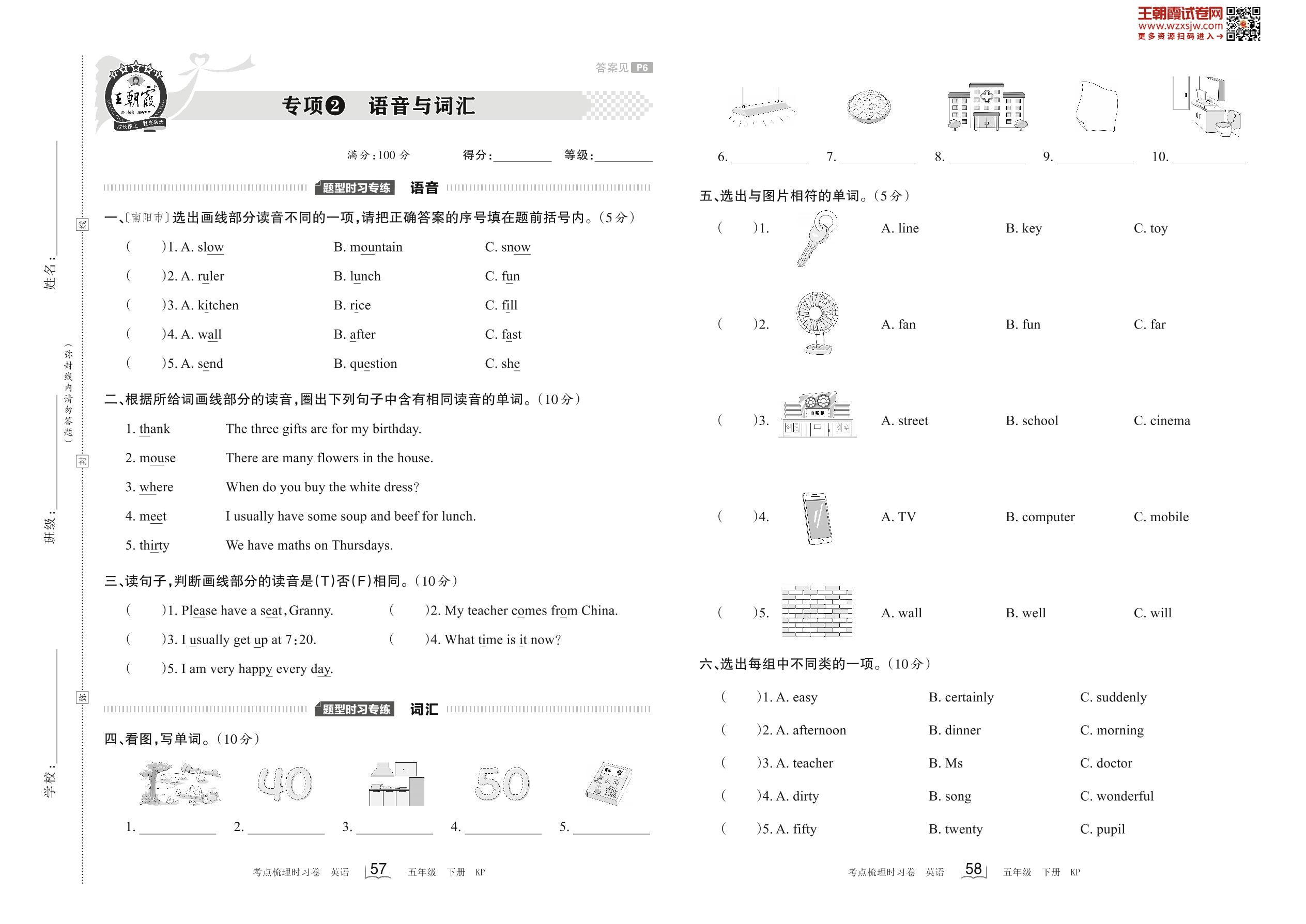 2023下册五年级英语科普版 专项2 语音与词汇