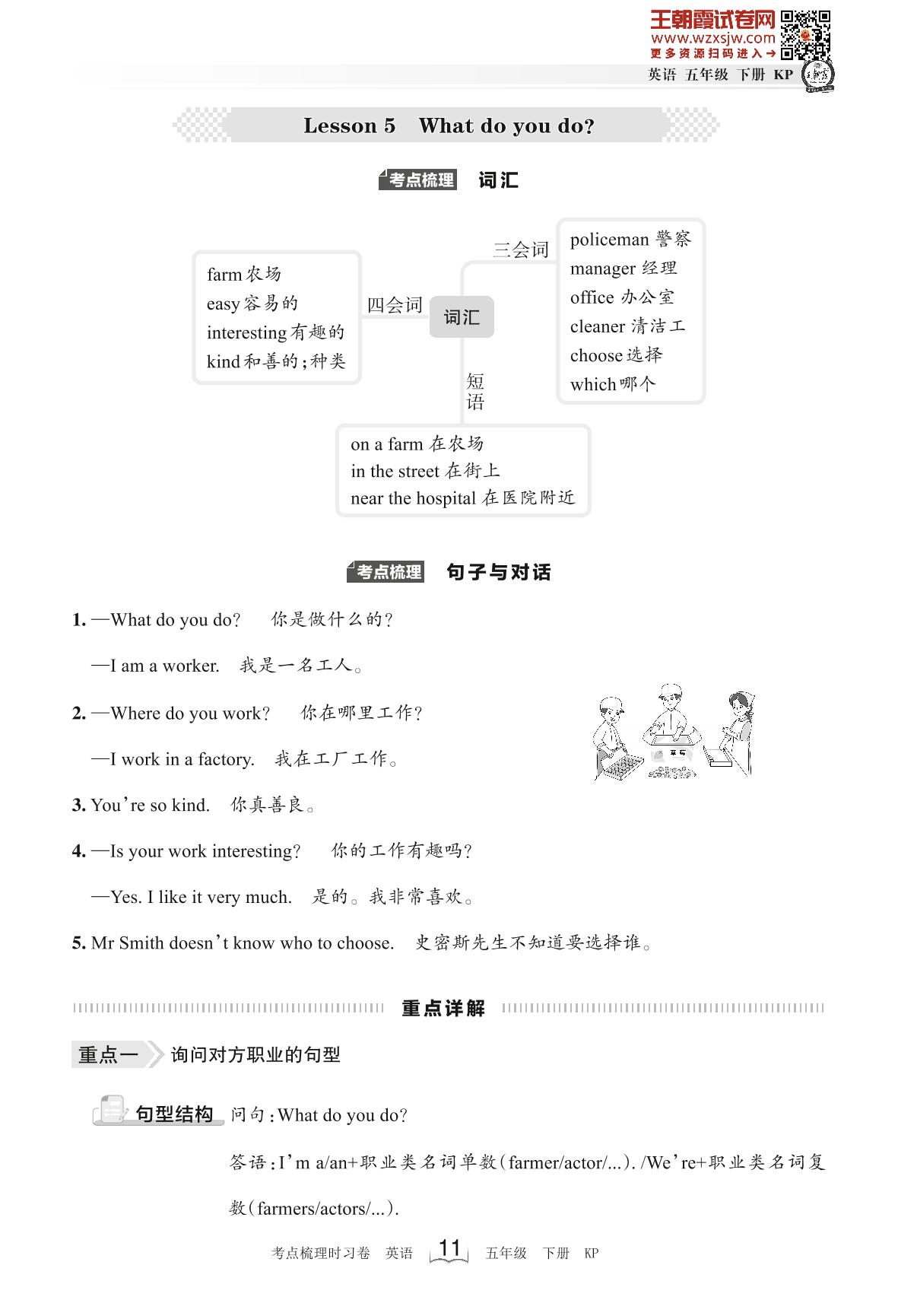 2023下册五年级英语科普版 考点梳理手册——Lesson 5 What do you do?