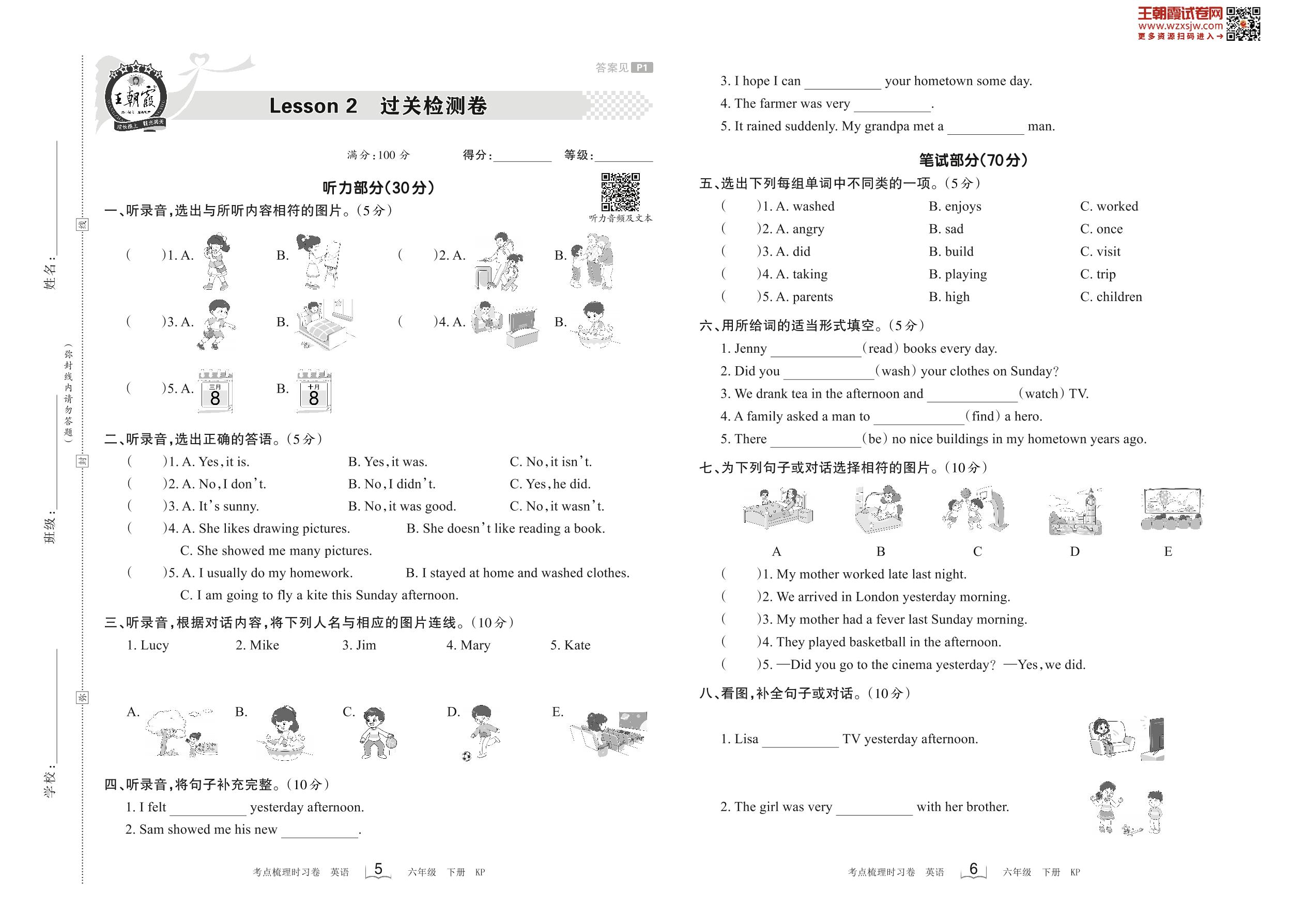 2023下册六年级英语科普版 Lesson 2 过关检测卷