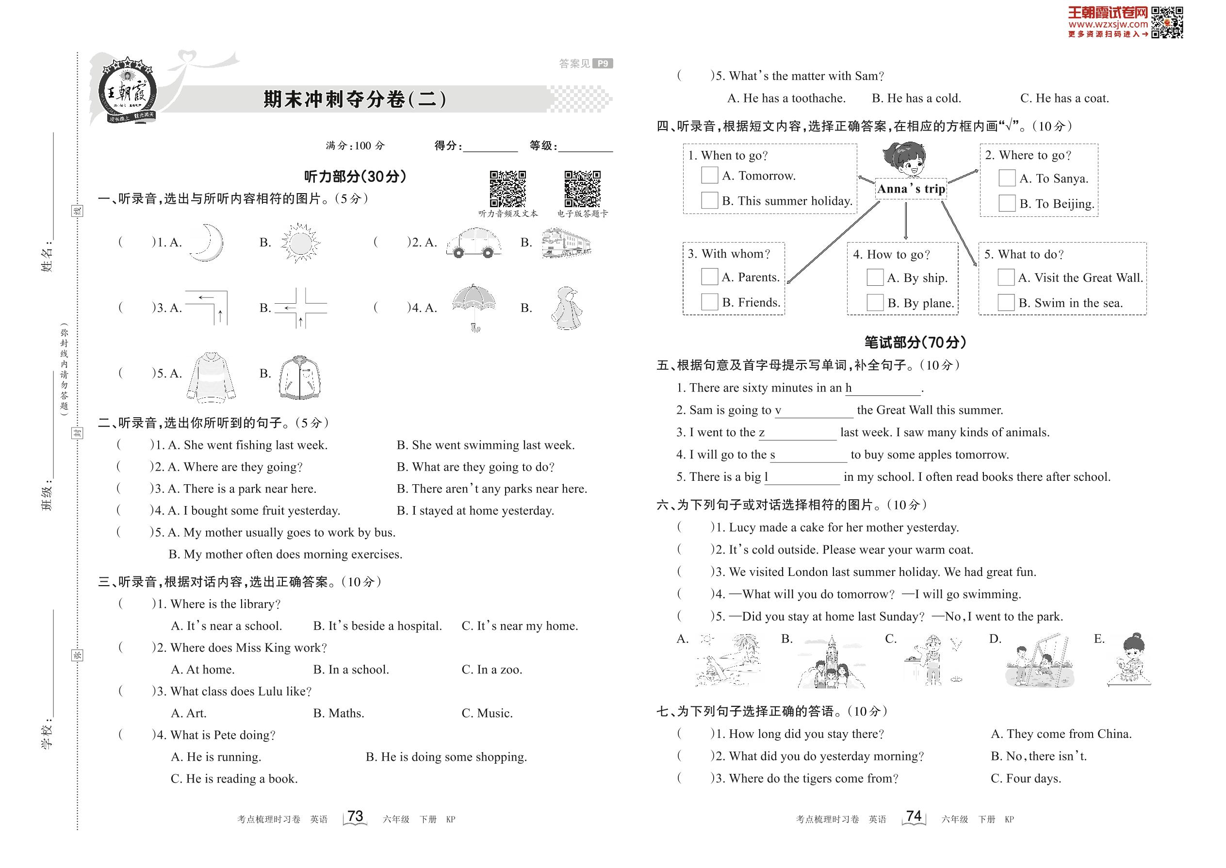 2023下册六年级英语科普版 期末冲刺夺分卷(二)