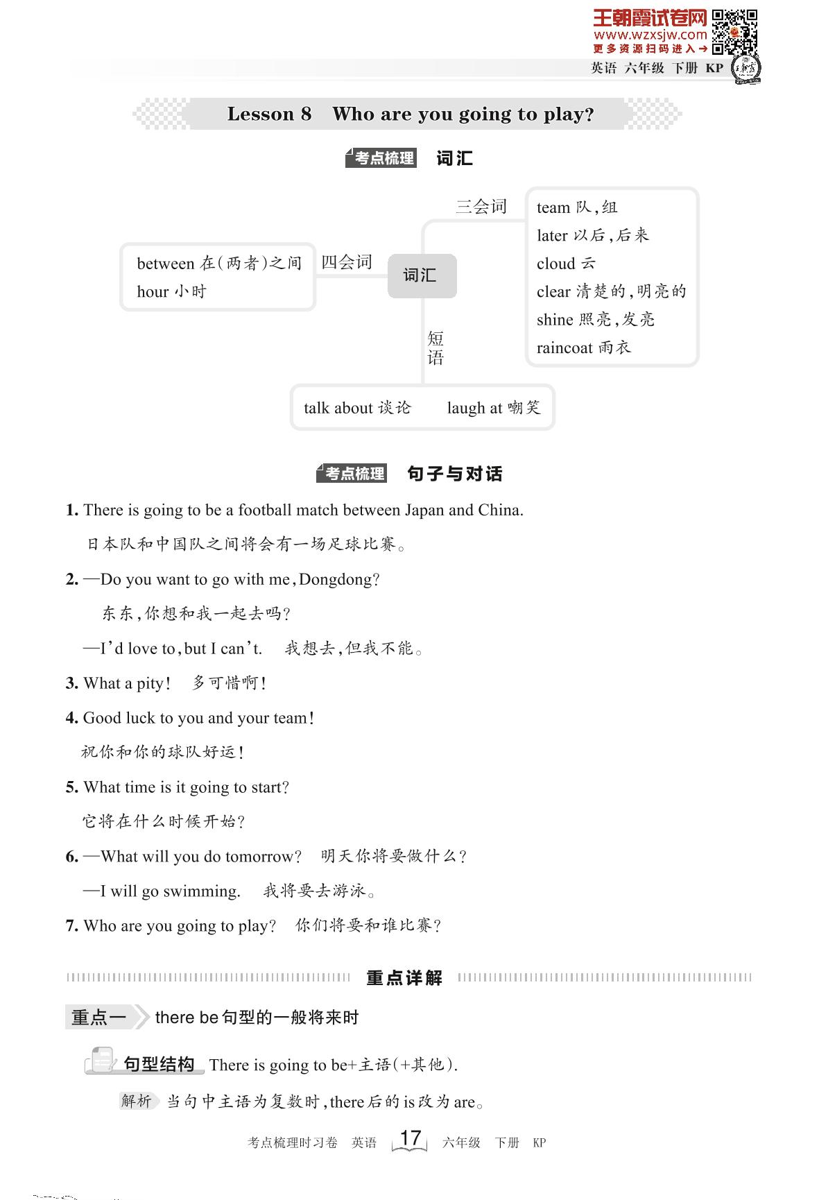 2023下册六年级英语科普版 考点梳理手册——Lesson 8 Who are you going to play?