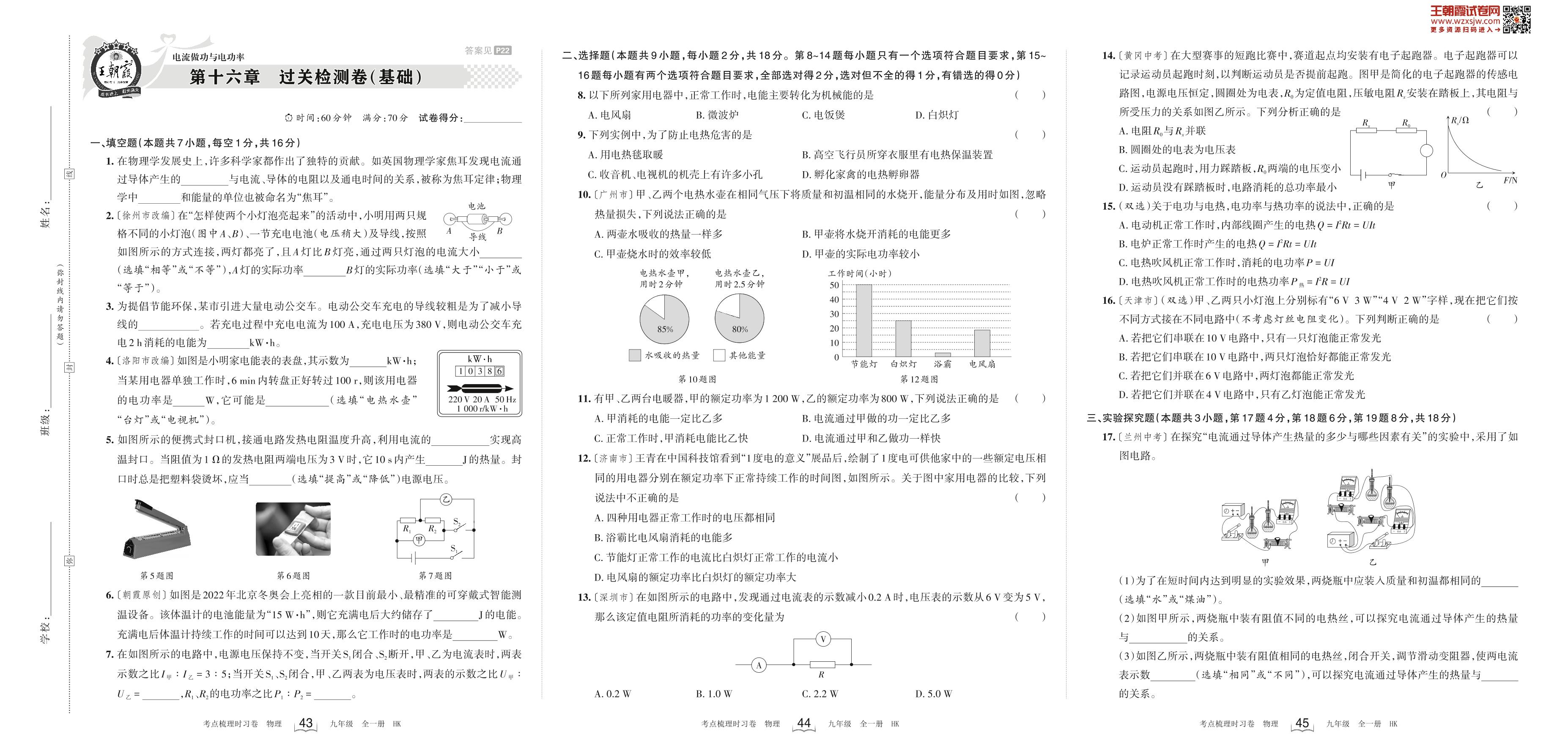 2023-2024学年九年级物理沪科版 第十六章 过关检测卷(基础)