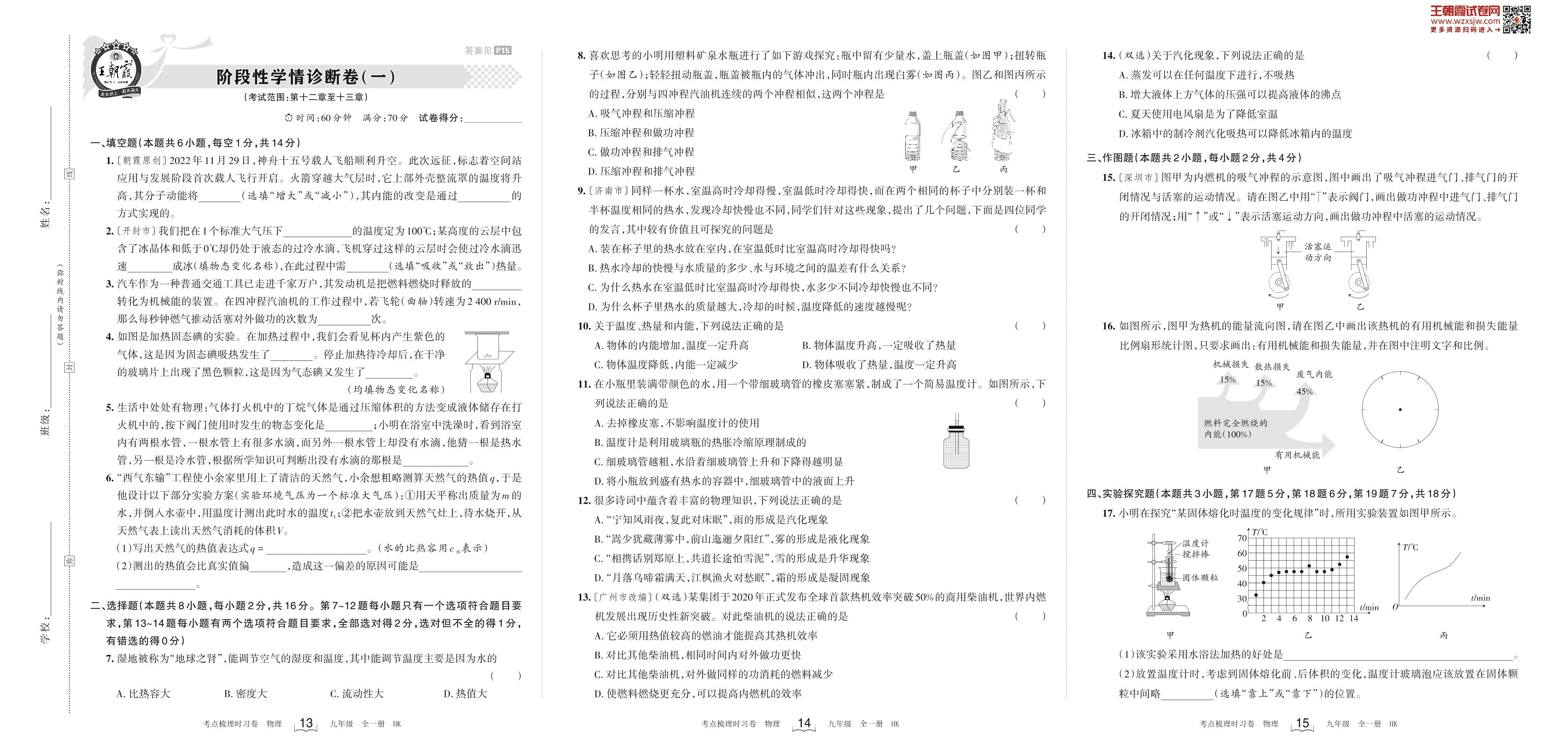 2023-2024学年九年级物理沪科版 阶段性学情诊断卷(一)